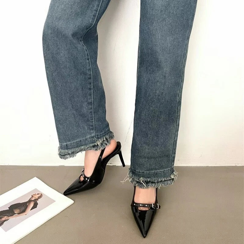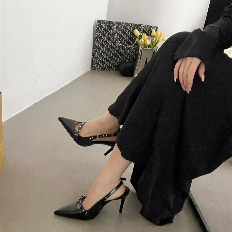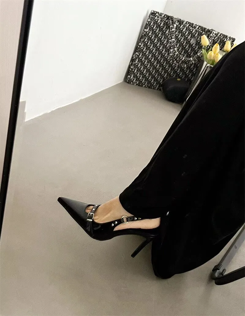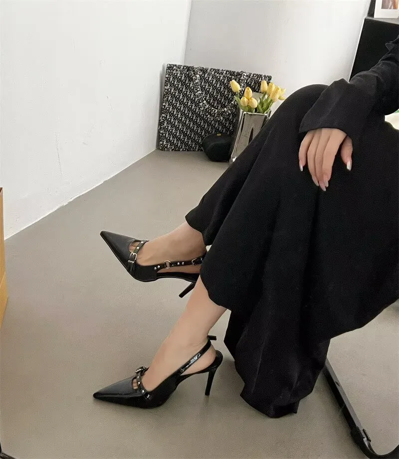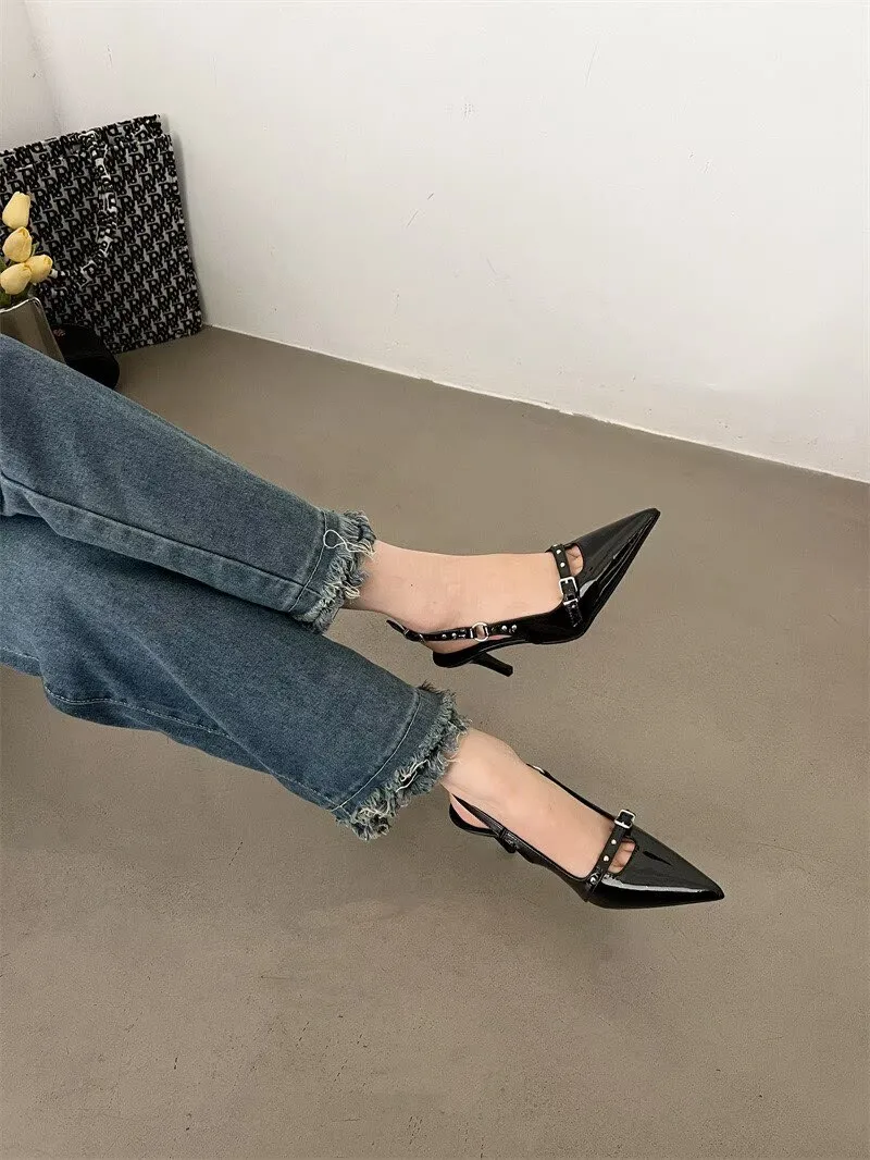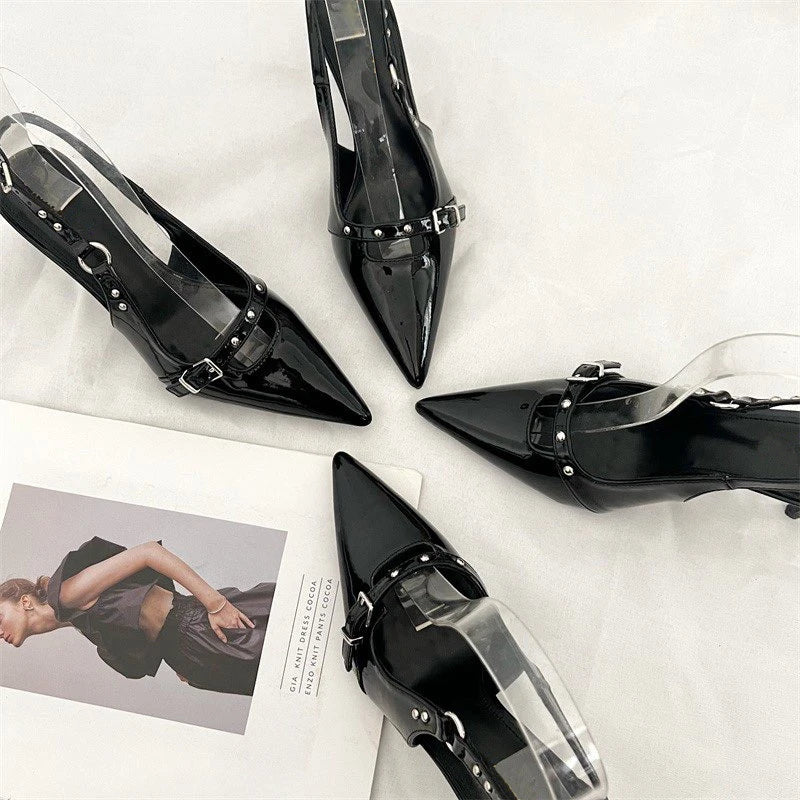Pbong Summer PVC Transparent Crystal Pointed Toe Sandals Women Elegant Buckle Strap Slingbacks Heels Shoes