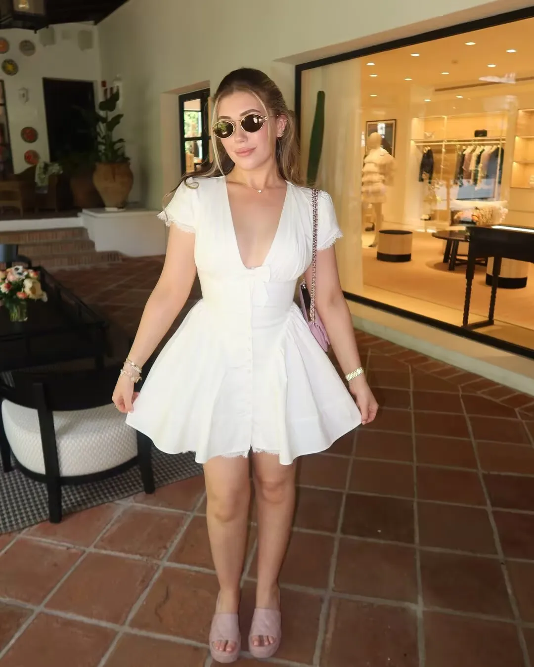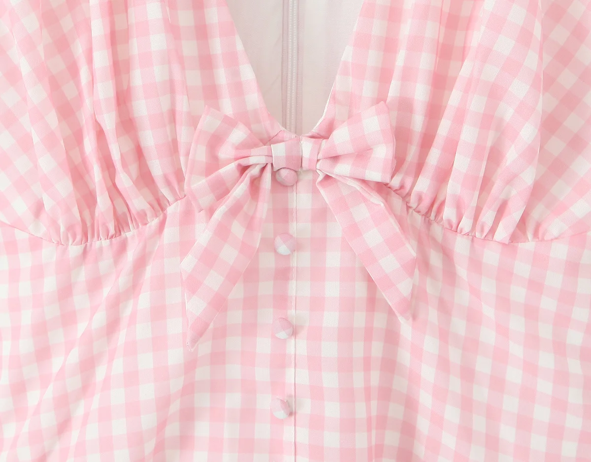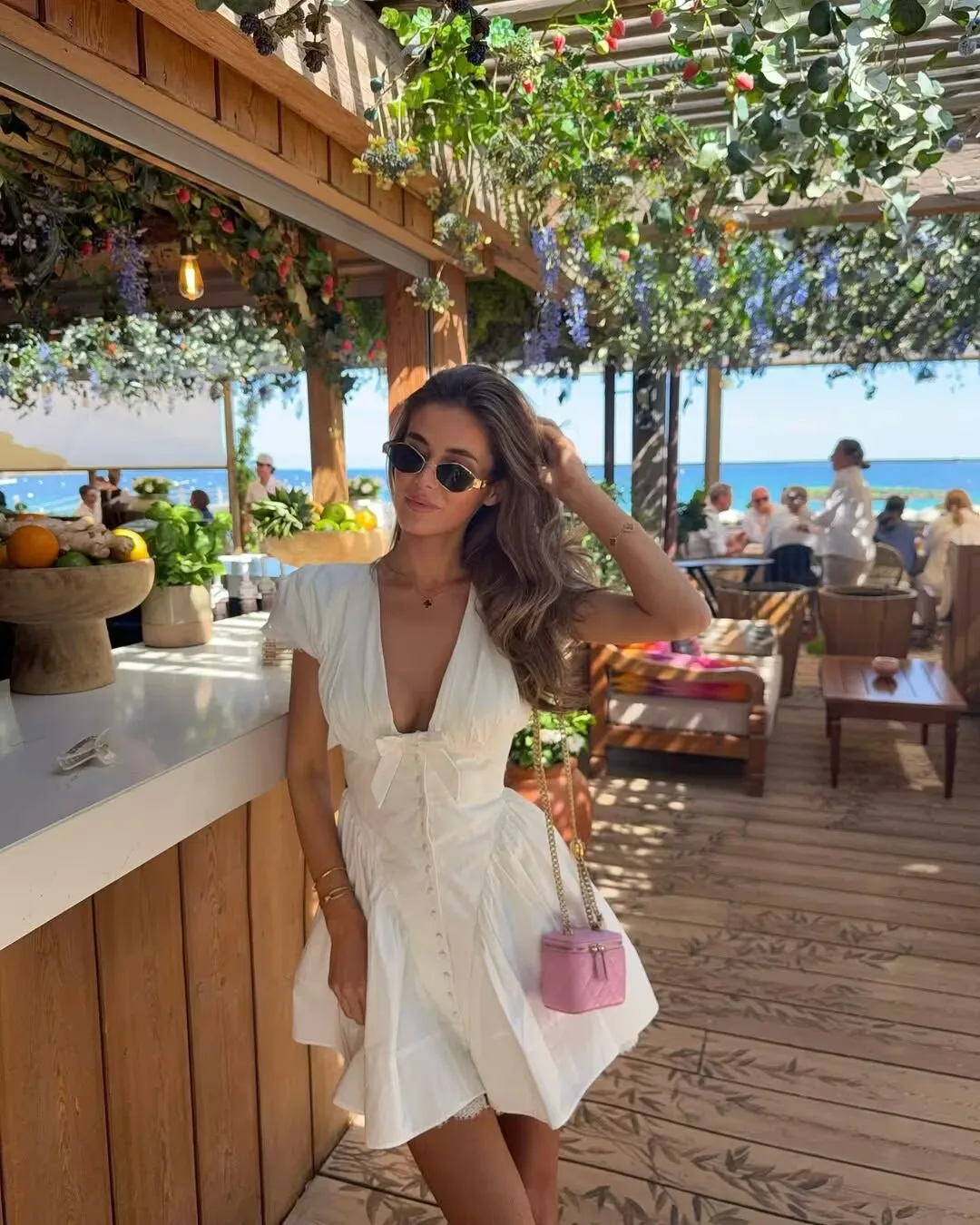 Pbong Sweet Cute White Mini Dress For Pretty Girl Elegant A-line Bow V Neck Summer Dresses Party Robe Vacation Vestidos