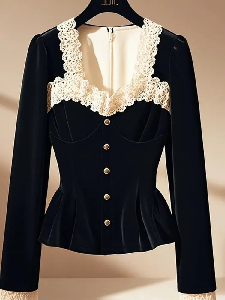 Pbong Vintage Luxury Lace Long sleeve Velvet Top Women Elegant Ladies Sequin Tunic Shirt Female Office Party Wear Top Korean New