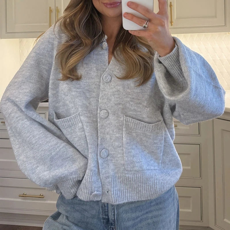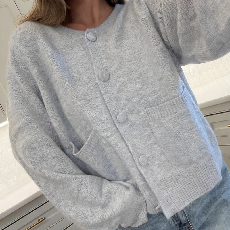 Pbong Women Autumn Knit Cardigans with Pockets Casual Button Up O Neck Long Sleeve Knitwear Vintage Loose Fit Sweater Coats Winter
