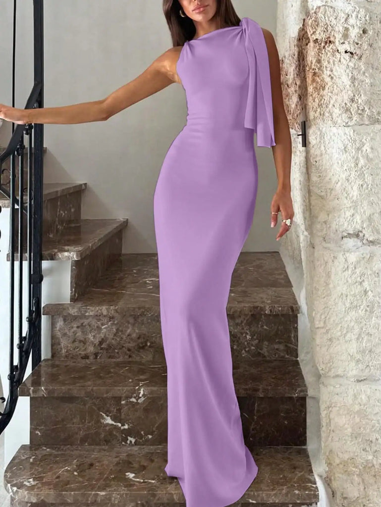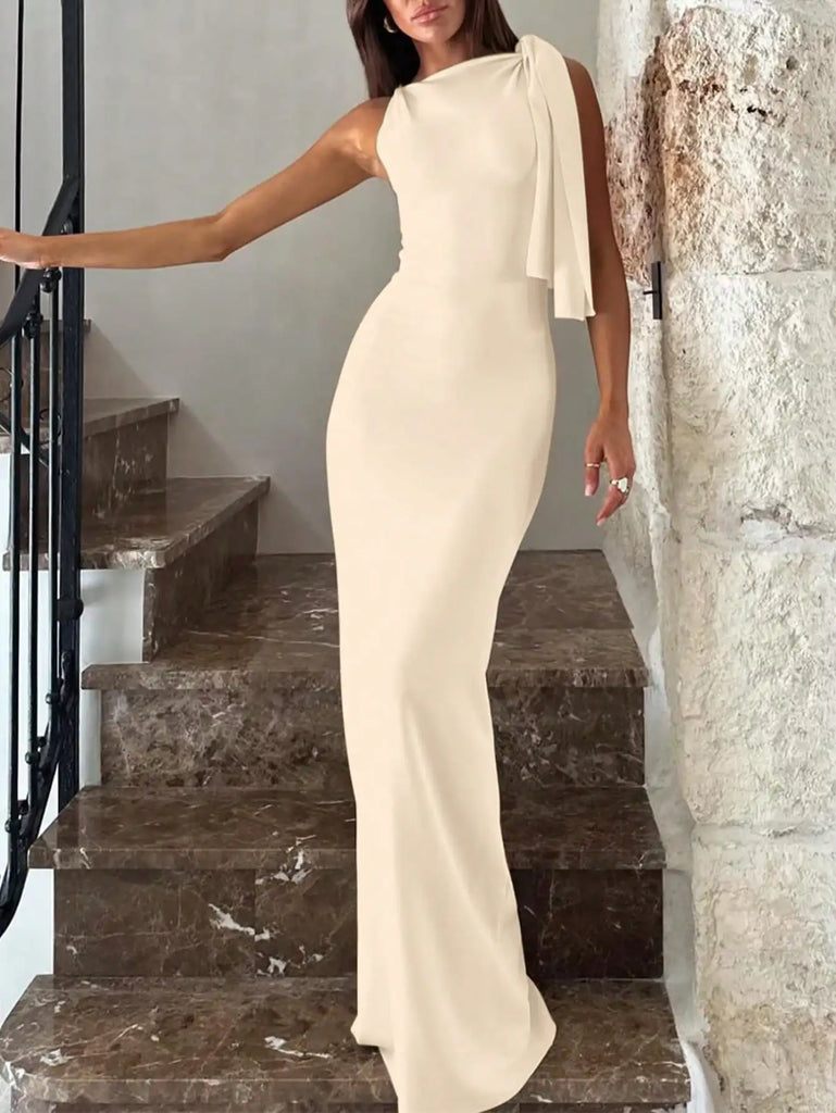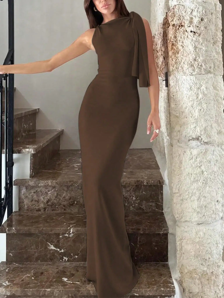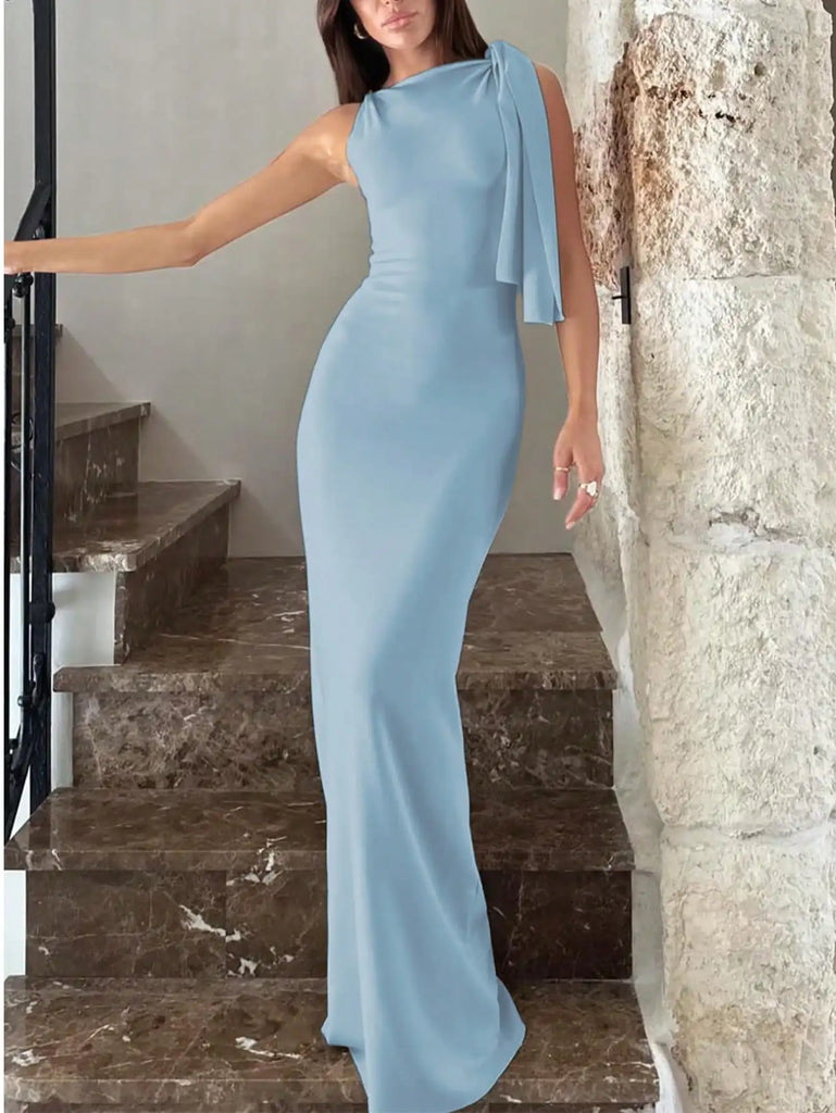 Pbong Women's Black Asymmetric One-Shoulder Long Dress for Elegant Party or Vacation