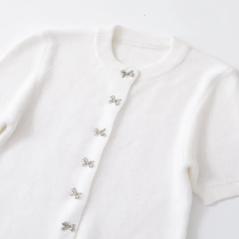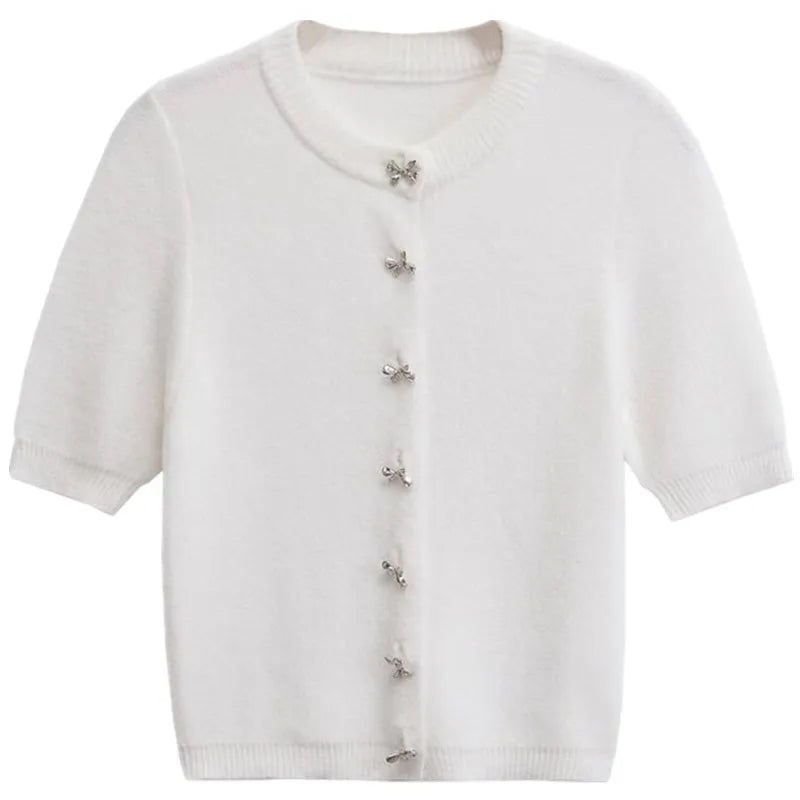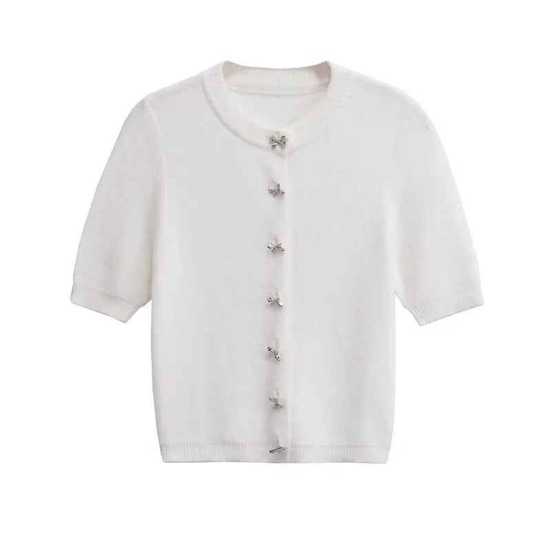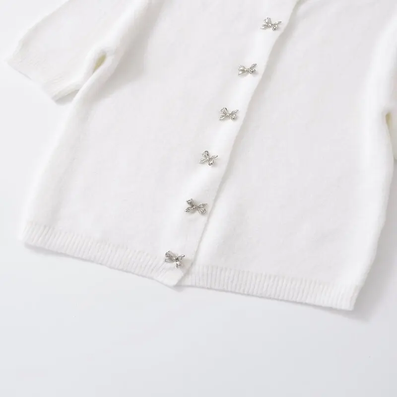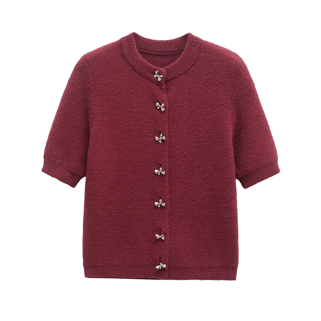 Pbong Women's Knitted Jaet Knot Button round Ne ort Sve Cardigan Commute Sle Autumn Season Regular Le...