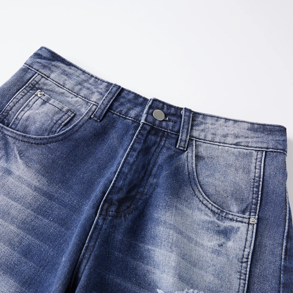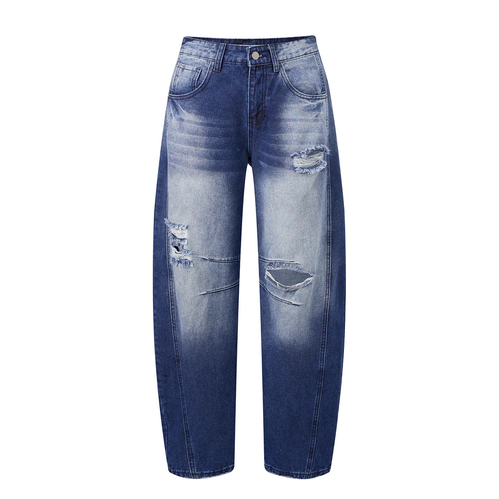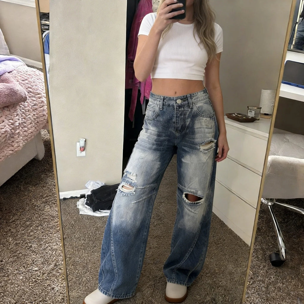 Pbong y2k Women Jeans Fashion Clothing High Waist Hole Ripped Wide Leg Loose Trousers with Pockets 2000s Clothes Streetwear