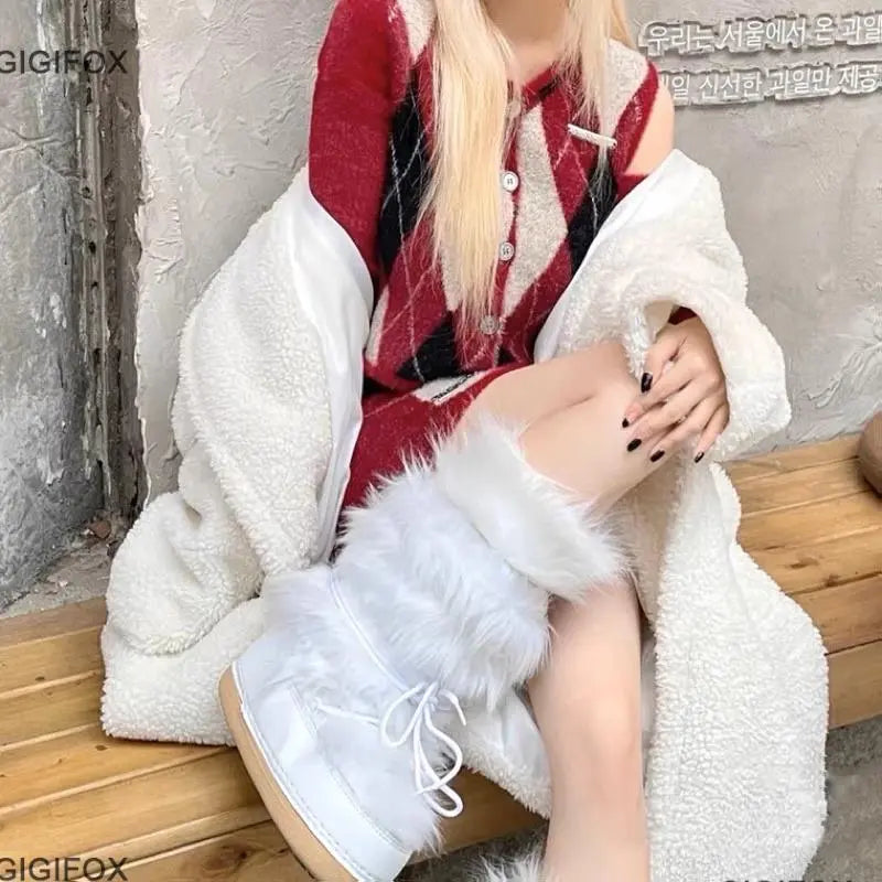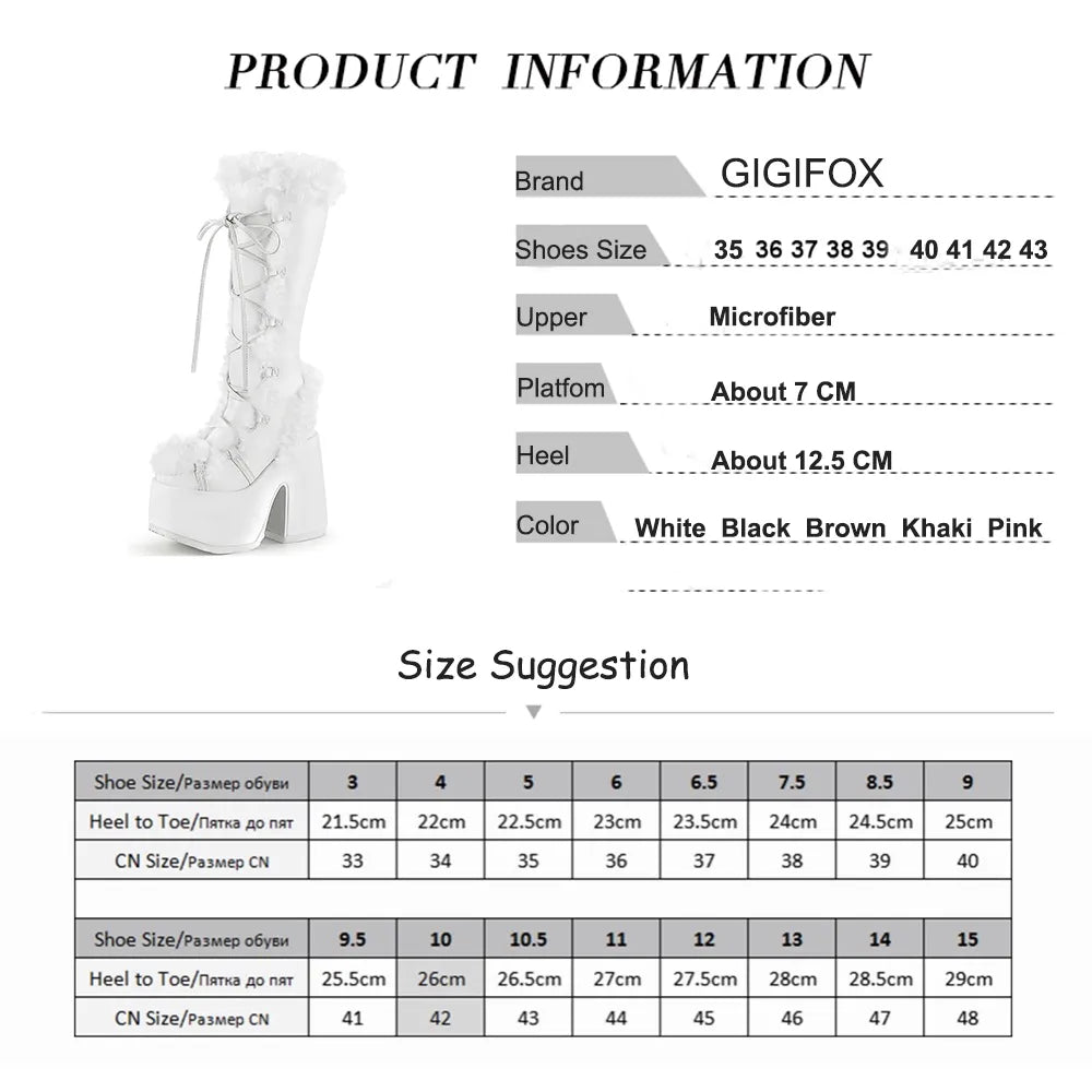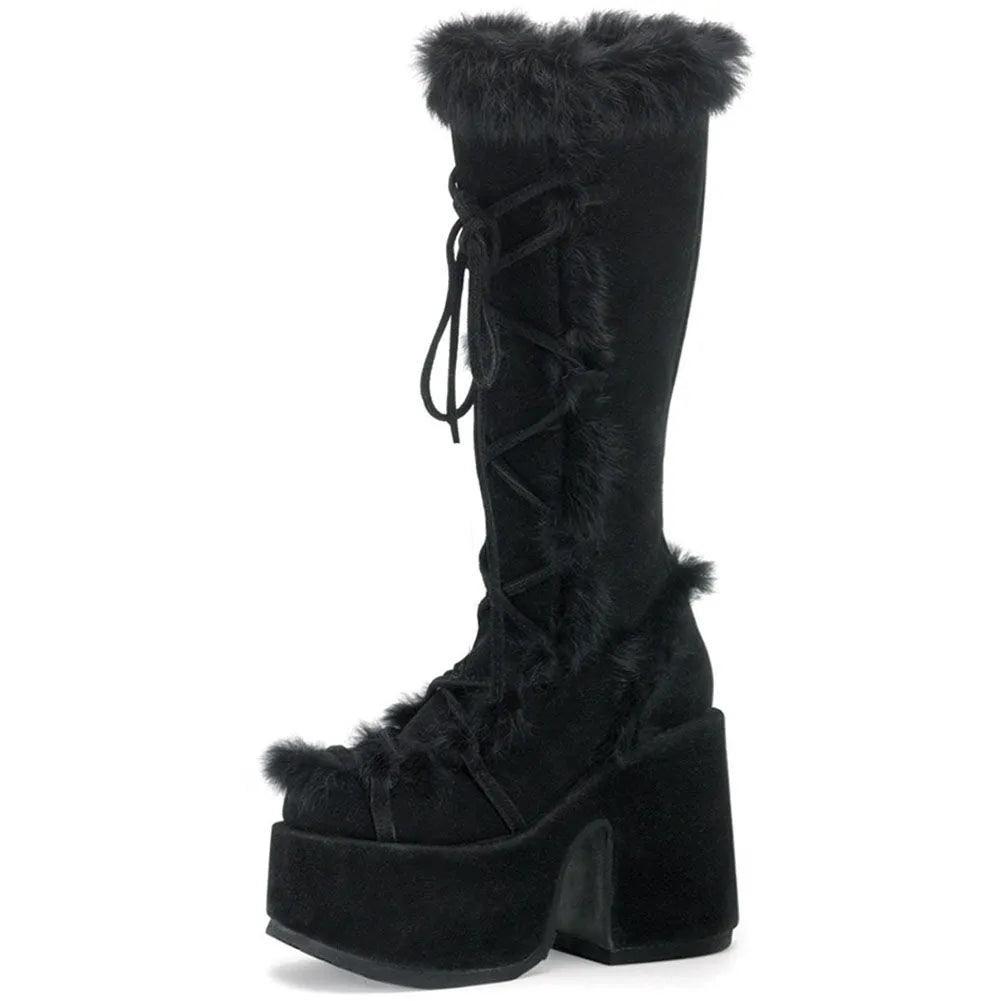 Platform Furry Boots Chunky High Heeled Winter Autumn Knee High Boots Women Faux Fur Zip Gothic Style Punk Shoes Ladies