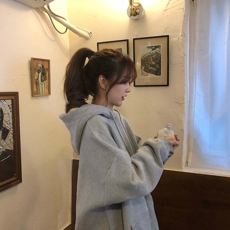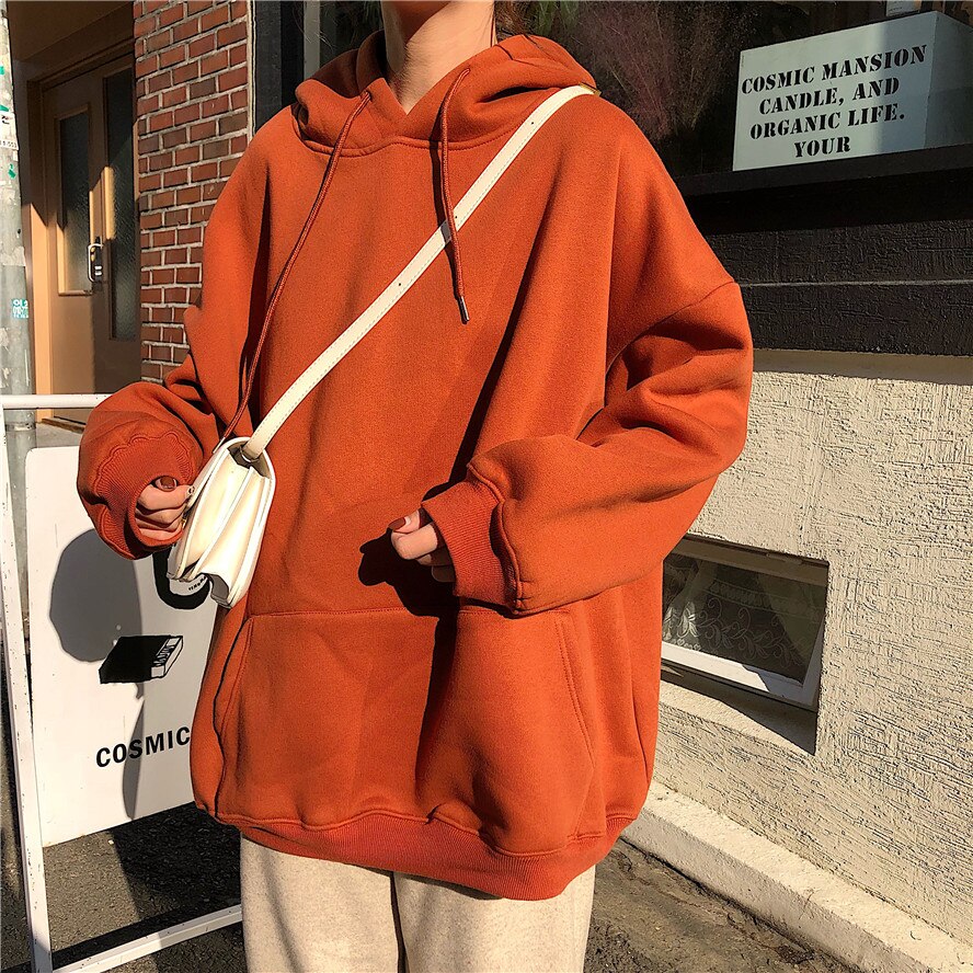 Plus Velvet Hooded Womens Korean Style Pullover Hoodies Women Solid Loose 2XL Casual Chic Daily Big Pocket Students sweatshirt