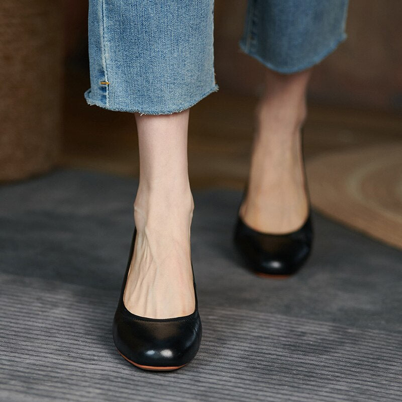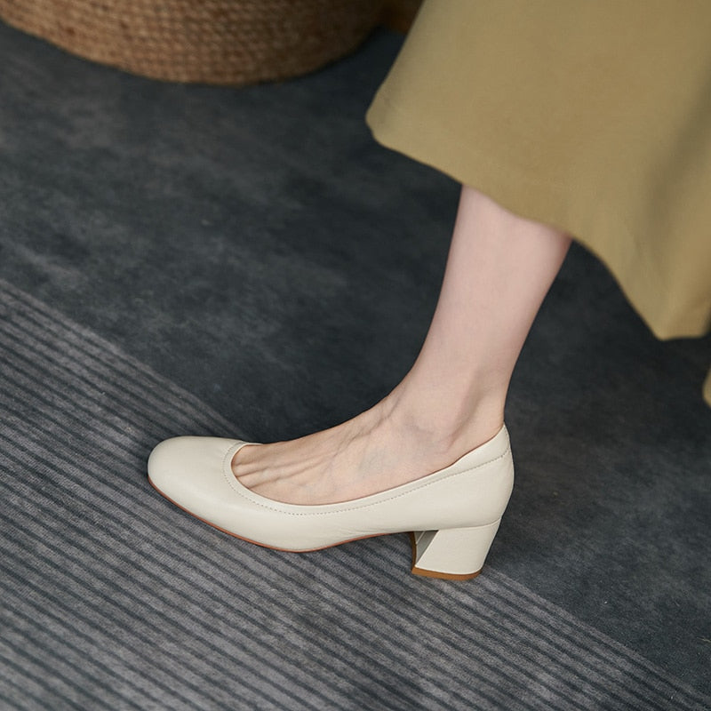 Pump Type: Basic Heel Type: Thick Heels Style: Office Lady With Platforms: No Outsole Material: Rubber Closure Type: Slip-On |