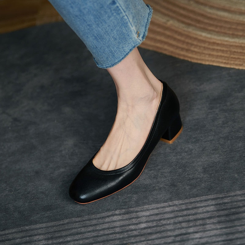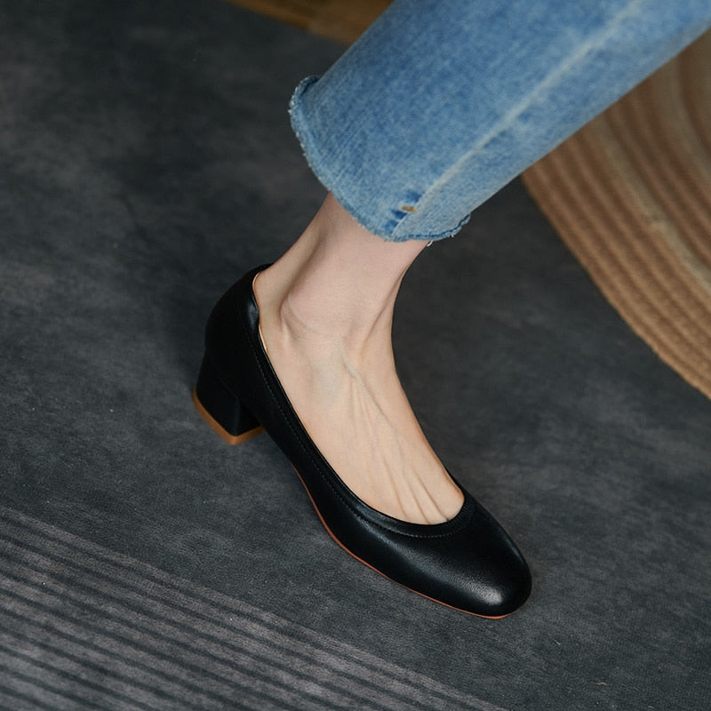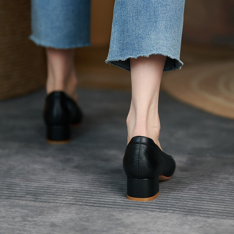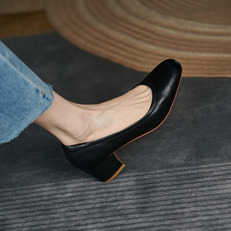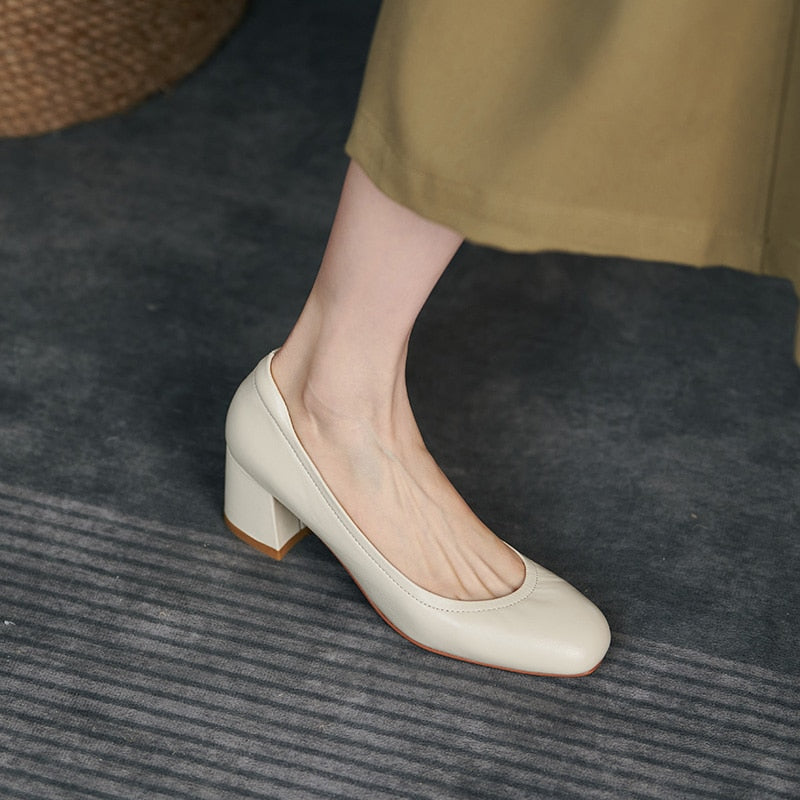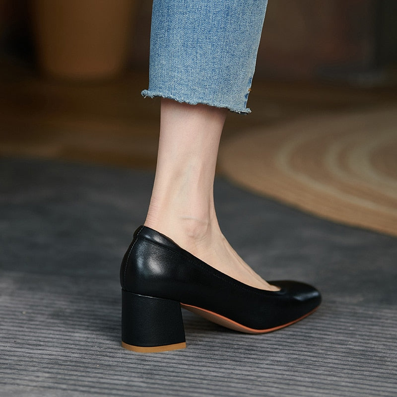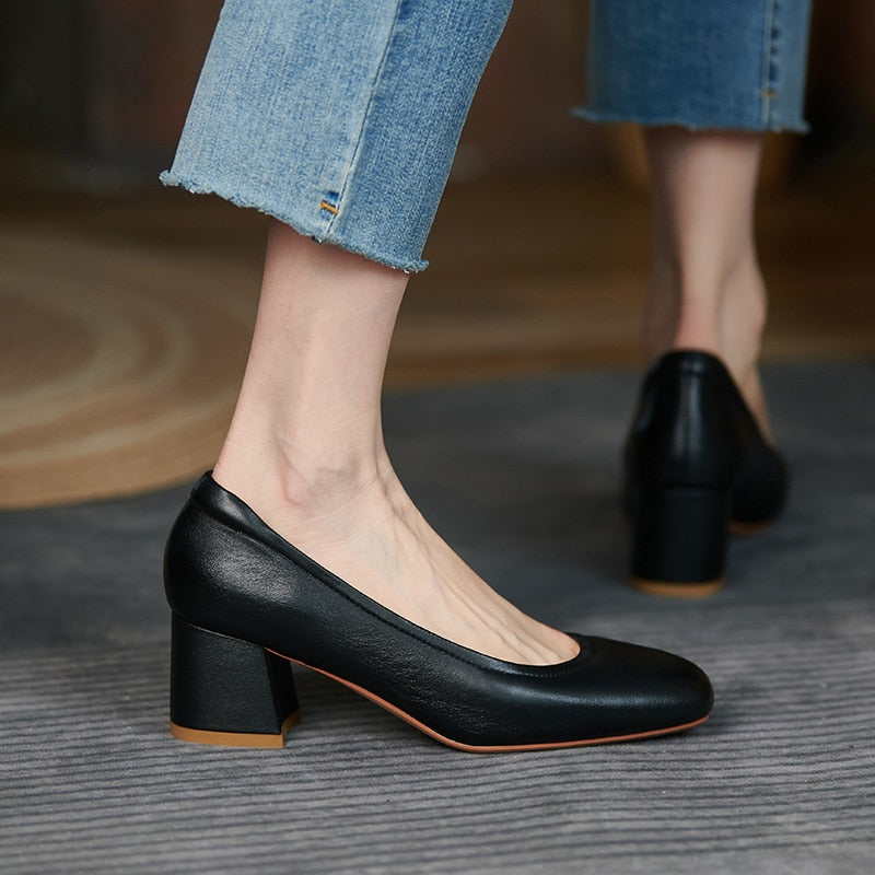 Fashion Element: Shallow Occasion: Office & Career Lining Material: Pigskin Leather Season: Spring/Autumn Toe Shape: Sqaure Toe Women Pumps Shoes |