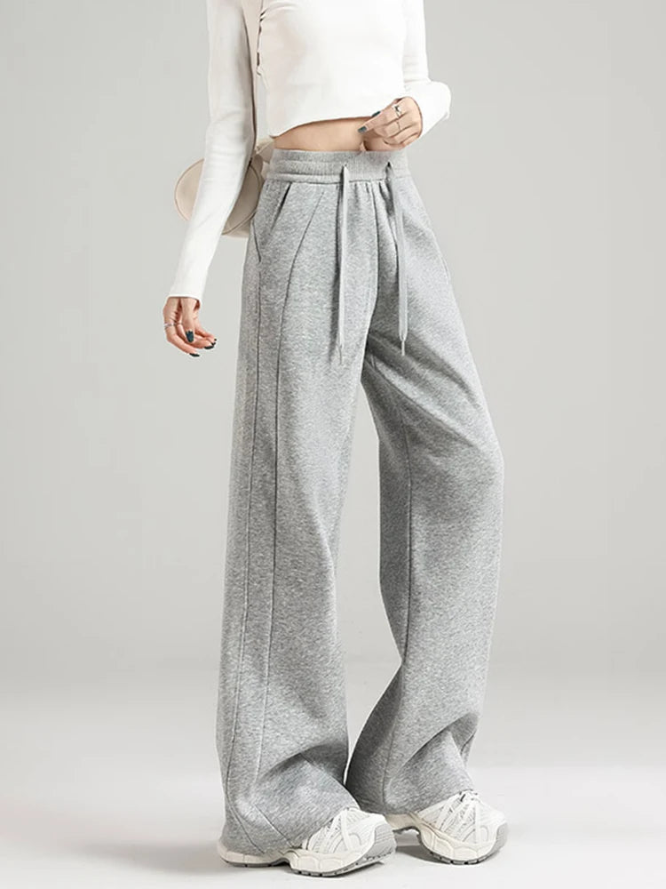 Preppy Style Black Sweatpants Women Vintage High Waist Loose Straight Pant Korean Casual Fall Lace Up Wide Leg Trousers New