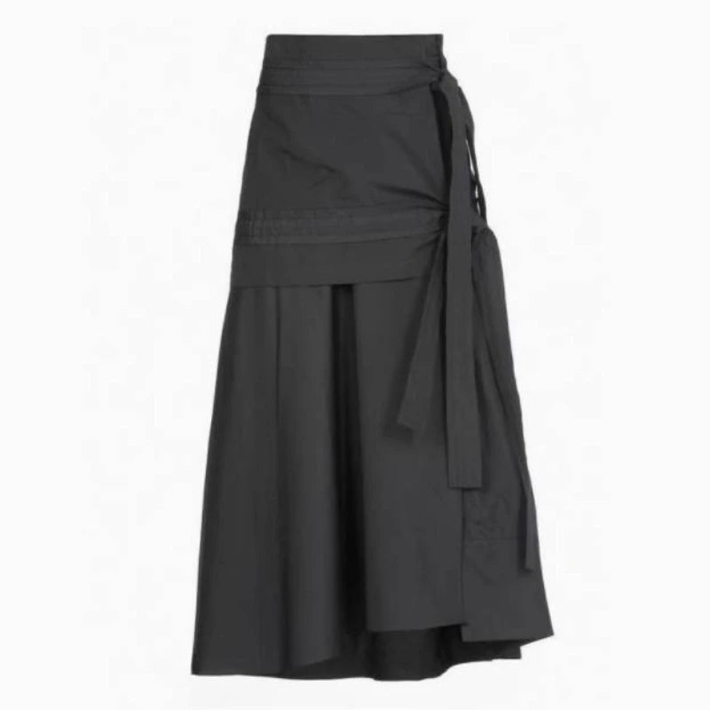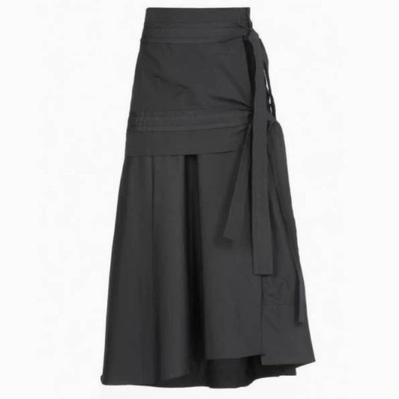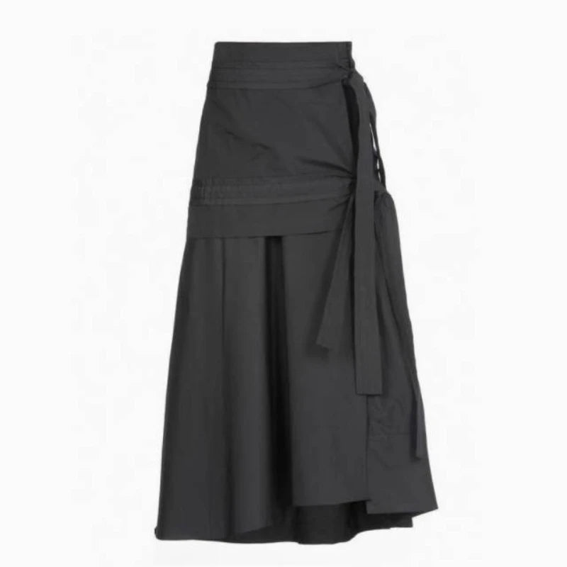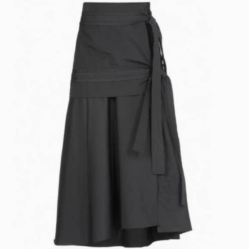 Preppy Style Gray Long Skirts Women Japanese Style Harajuku Midi Skirt Vintage Asymmetrical Casual Aesthetic Skirts