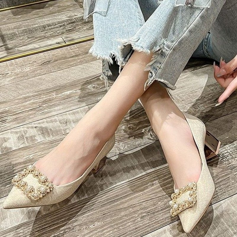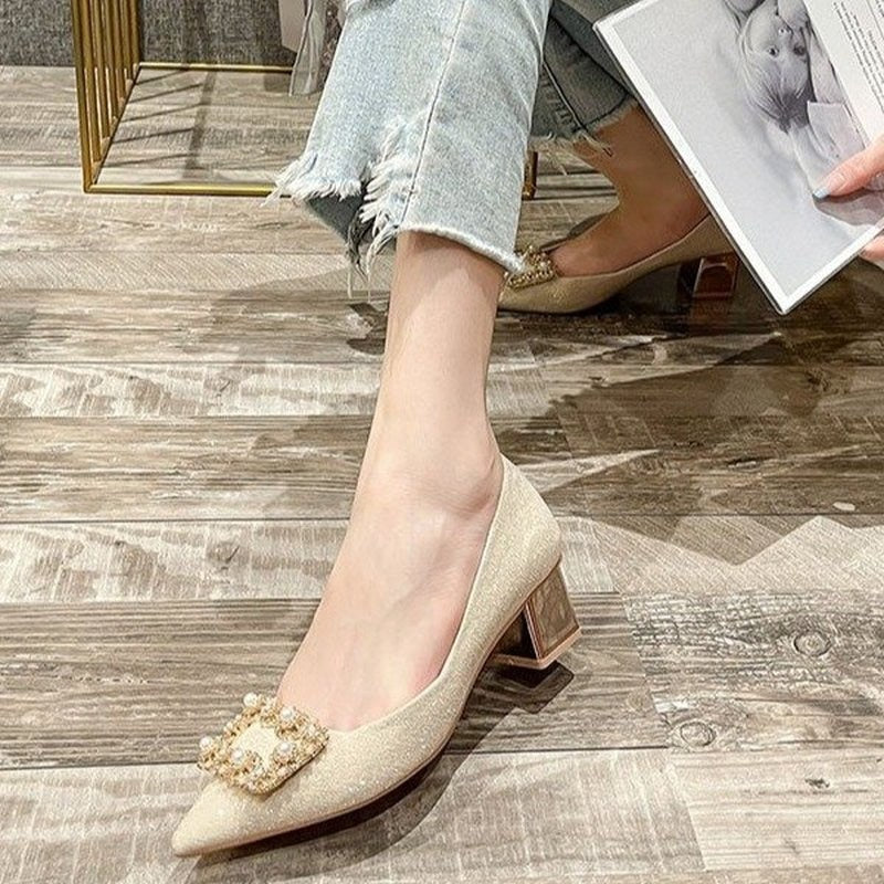 Pumps New Pearl Diamond Buckle Pointed Toe Fashion High Heels Summer Designer Shoes Wedding Party Luxury Brand Woman Shoe