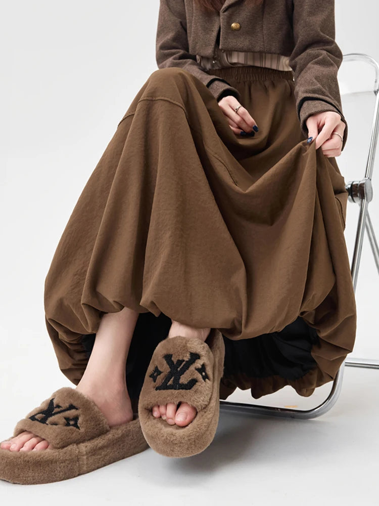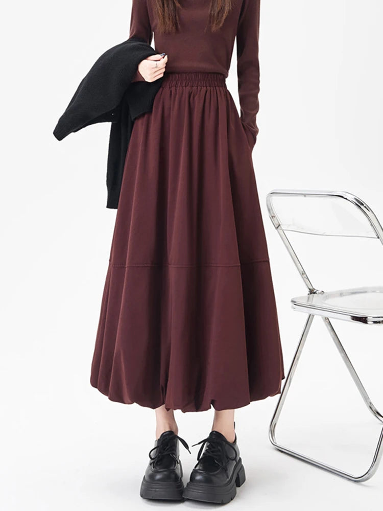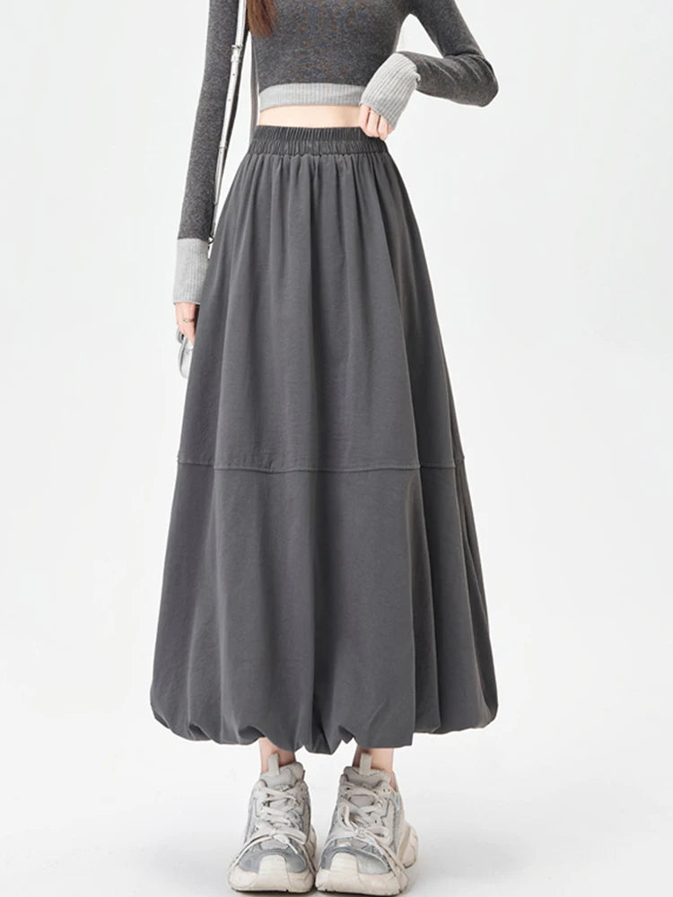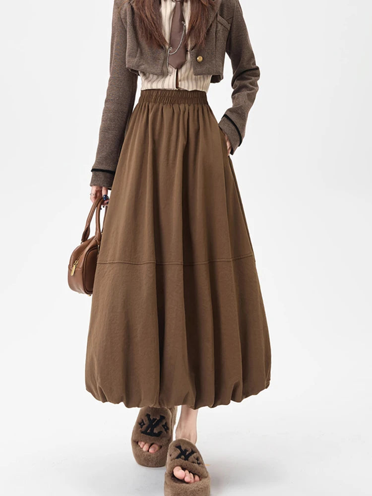 Retro Ball Gown Long Skirt Women Loose High Waist Elegant A Line Skirt Fall Vintage Sweet Design Korean Solid Long Skirts