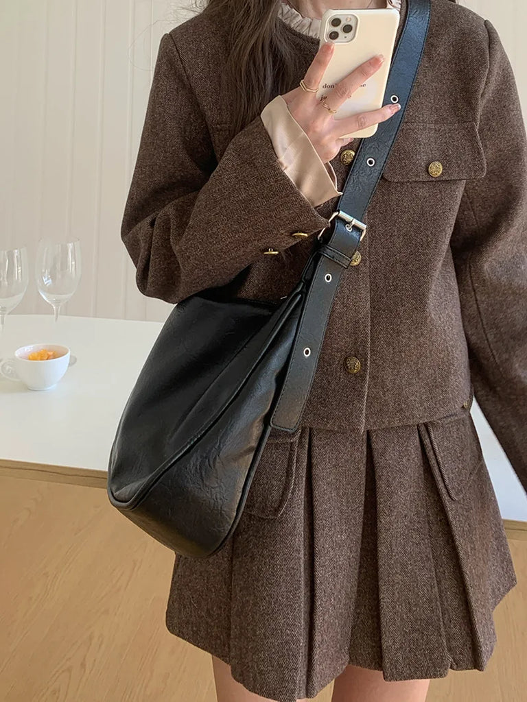 Retro Solid Color Women's Large Shoulder Bag Soft Pu Leather Ladies Commute Crossbody Bags Female Tote Handbags Underarm Bag