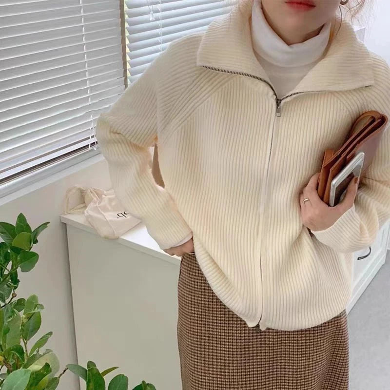 Rib Knit Zip Up Cardigan for Women Zipper Front Raglan Long Sleeve Sweater Jacket Coat Comfy Knitwear Fall Winter Vintage Outfit