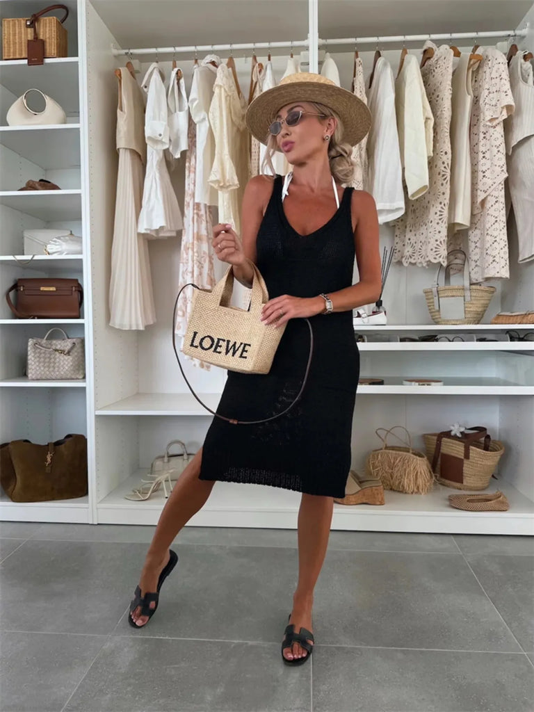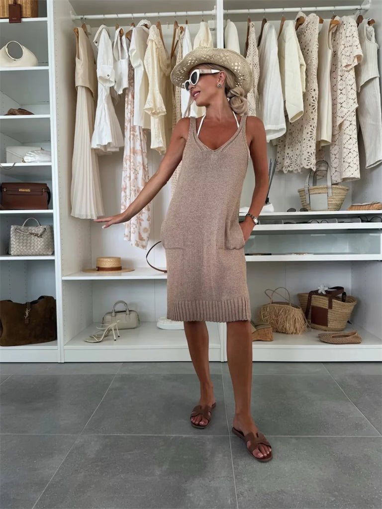 Ribbed Hem V-Neck Sweater Dress