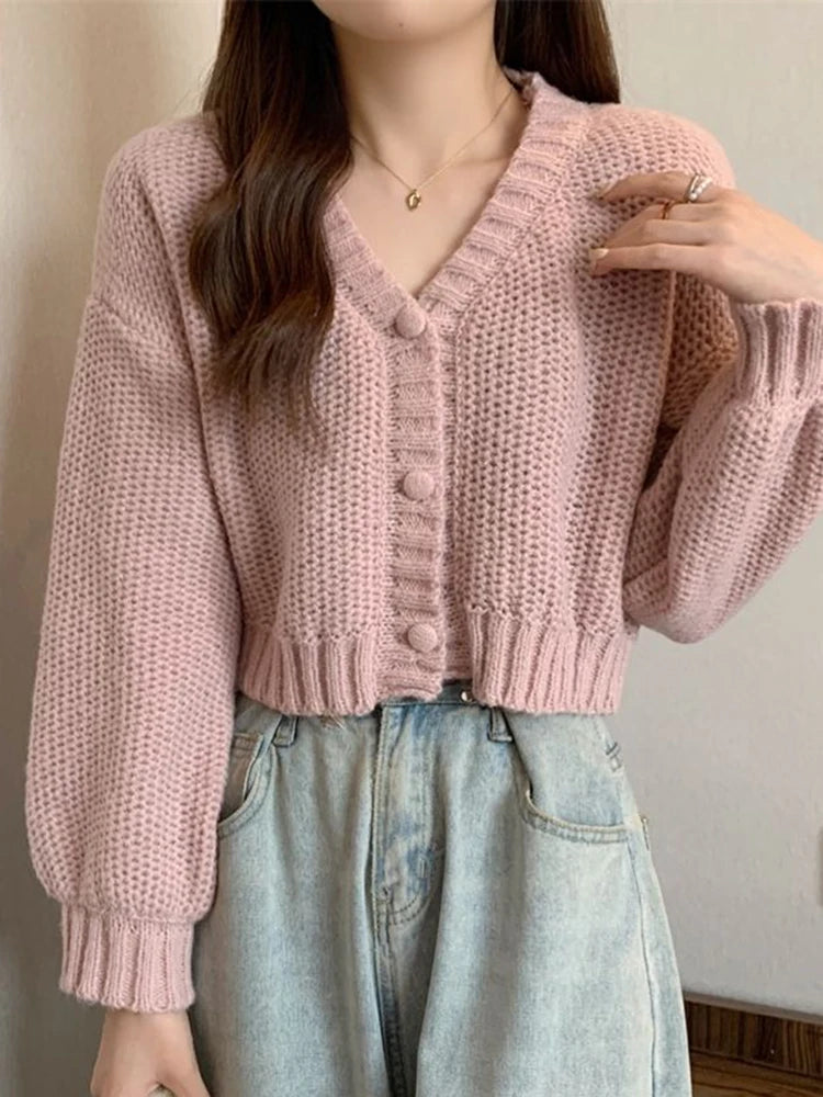 Sexy Cropped Sweet Cardigan Women V Neck Vintage Slim Long Sleeve Knitted Sweaters Korean Causal Simple Solid Lady Fall Tops New