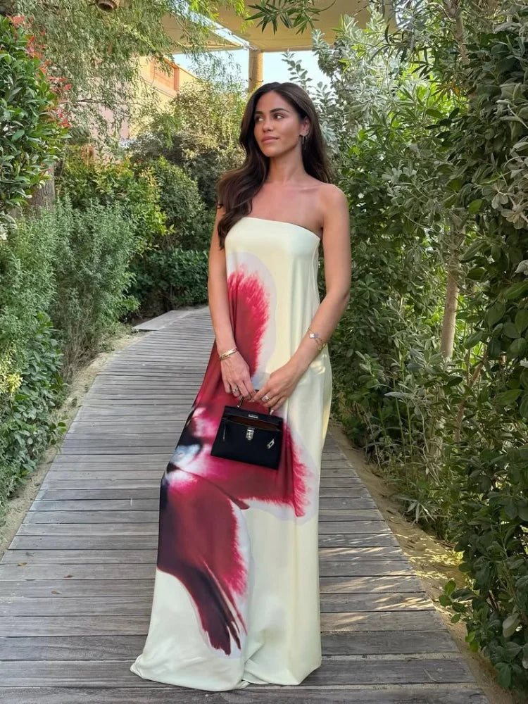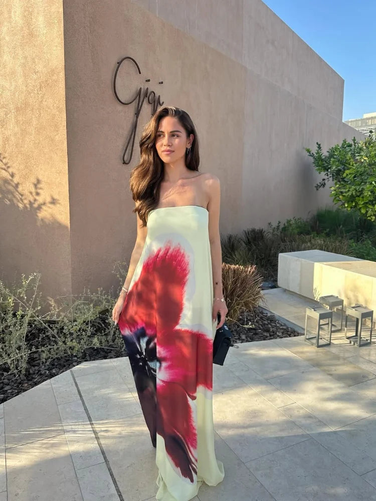 Model Number: 2025 Chic Floral Printed Strapless Loose Long Dress