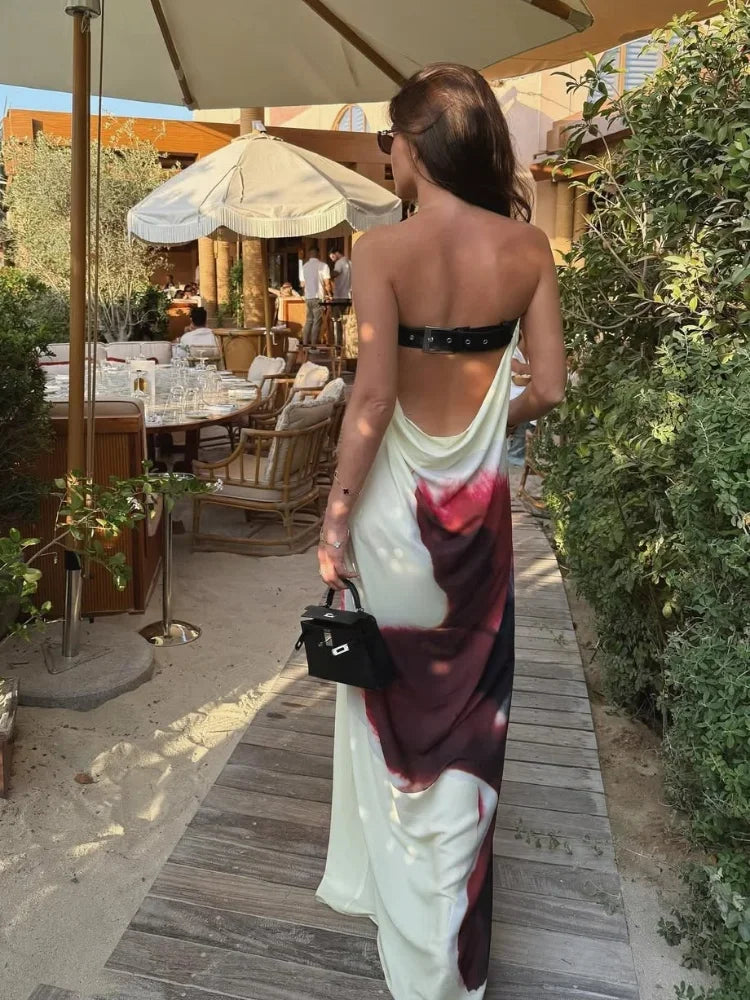 Sexy Lady Backless Belt Sleeveless Long Dress Fashion Floral Printed Loose Woman Maxi Dresses Spring Summer New Beach Party Robe