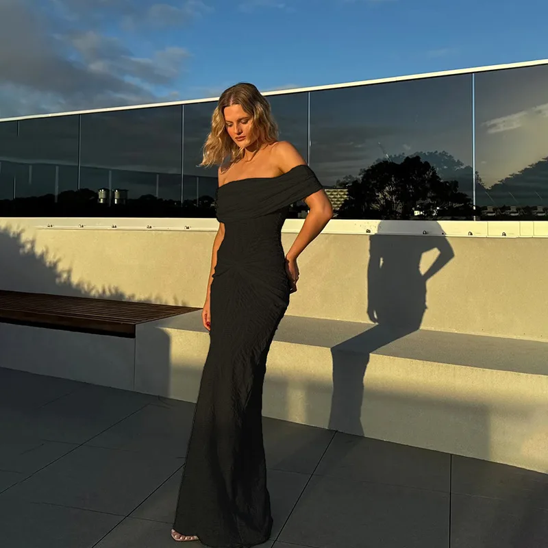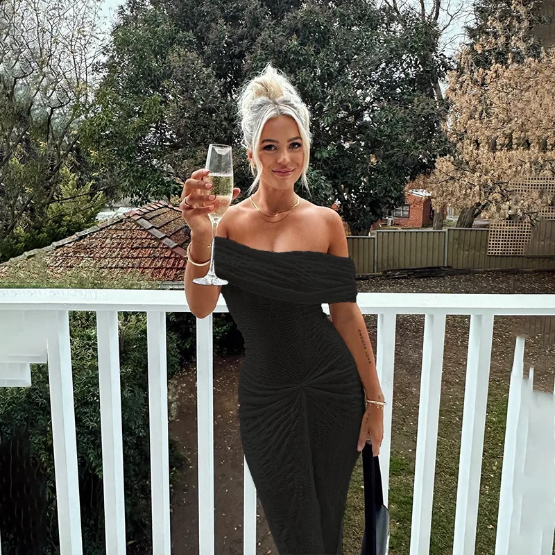 Sexy Off Shoulder Ruched Long Dress Women's Sleeveless Curvy Casual White Black Dresses Party New Summer Evening Party Cocktail