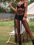Sexy Perspective Star Mesh Bikini Cover Up Dress Fashion Ins Style Street Sling Dress New Long Net Yarn Female Beachwear Dress