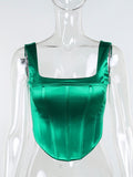 Sexy Satin Boned Corset Top For Women Summer Sleeveless Backless Square Collar Cropped Tops Club Party Tunic