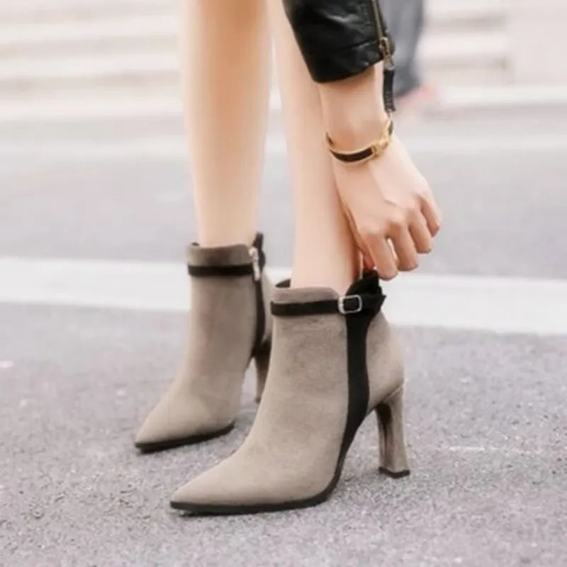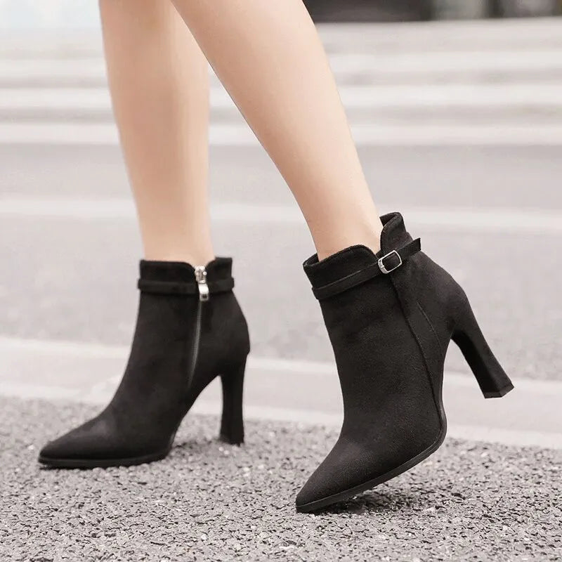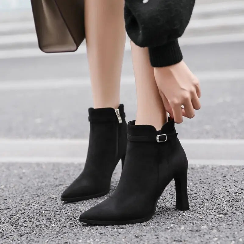 Short Shoes for Woman Suede Women's Ankle Boots Very High Heels Booties Pointed Toe Footwear Heeled Black on Offer