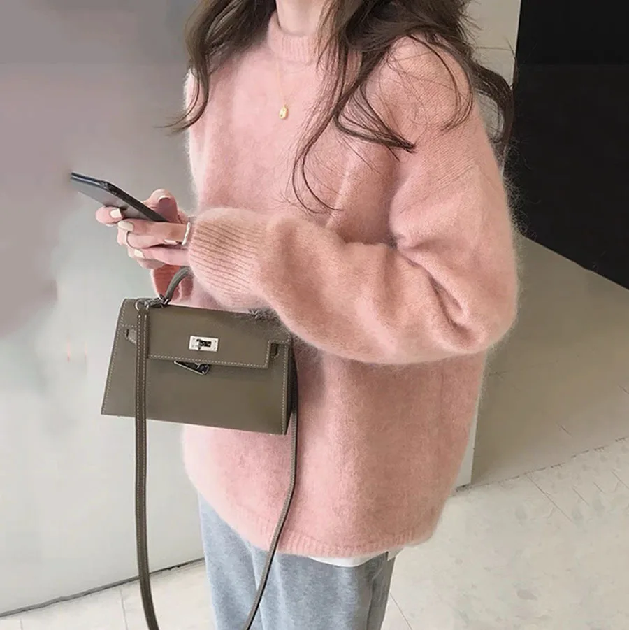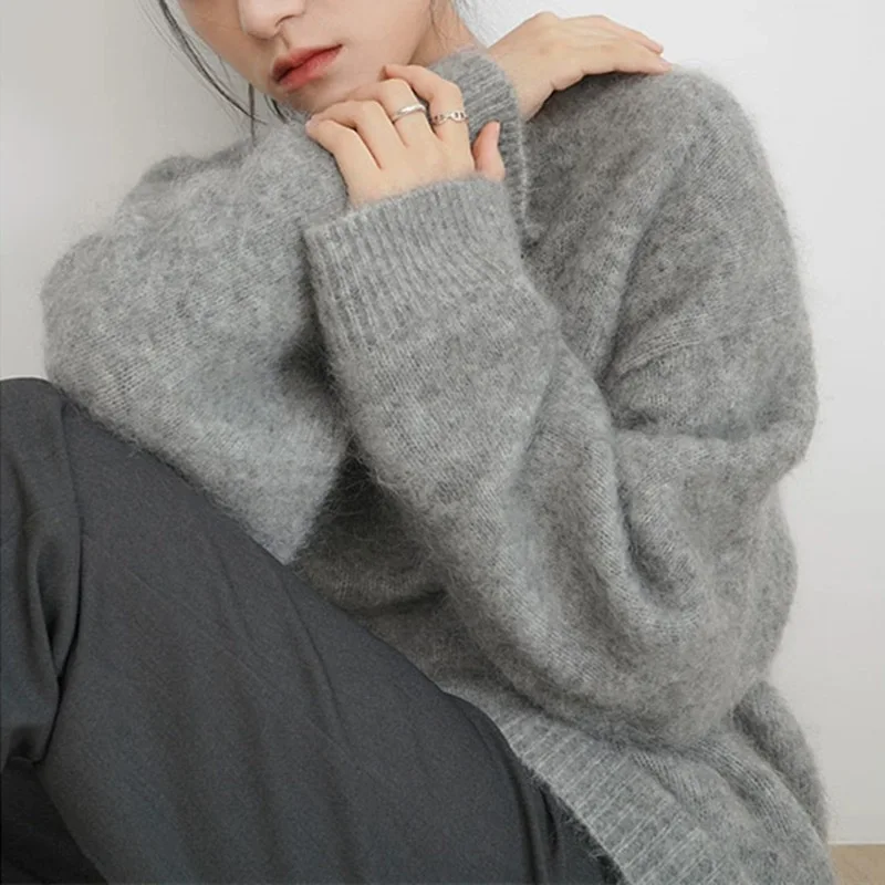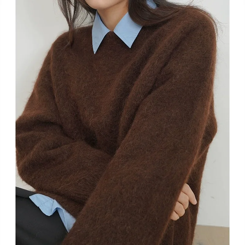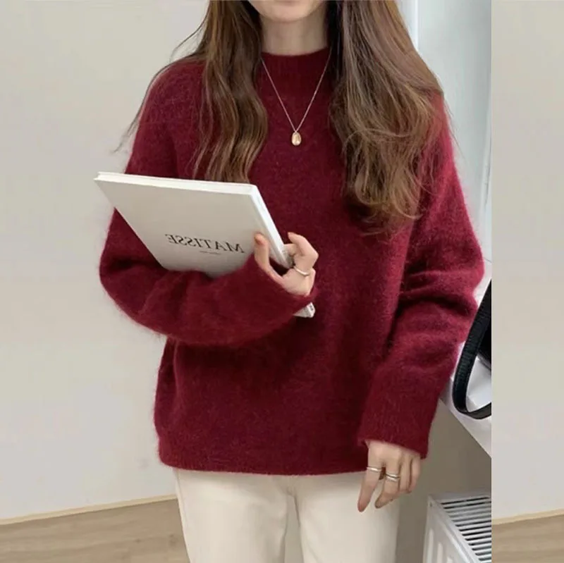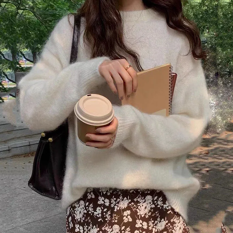 Simple Lazy American Vintage Office Lady O Neck Pullovers Autumn Winter All Match Base Jumpers Punk Y2k Aethetic Women Clothes