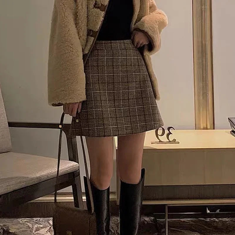 Skirts Women Plaid Slim Korean Style Casual All-match High Waisted Mujer Spring-autumn Comfortable Student Club Female Harajuku