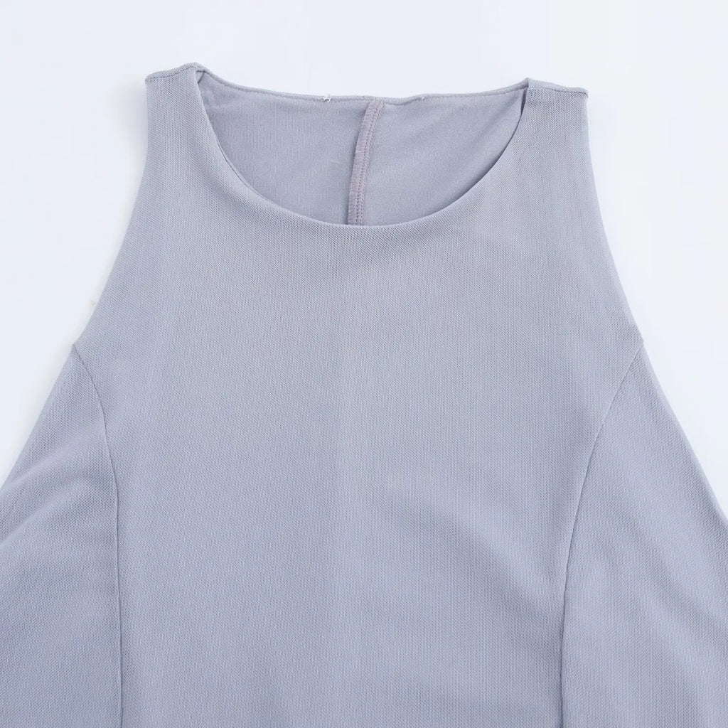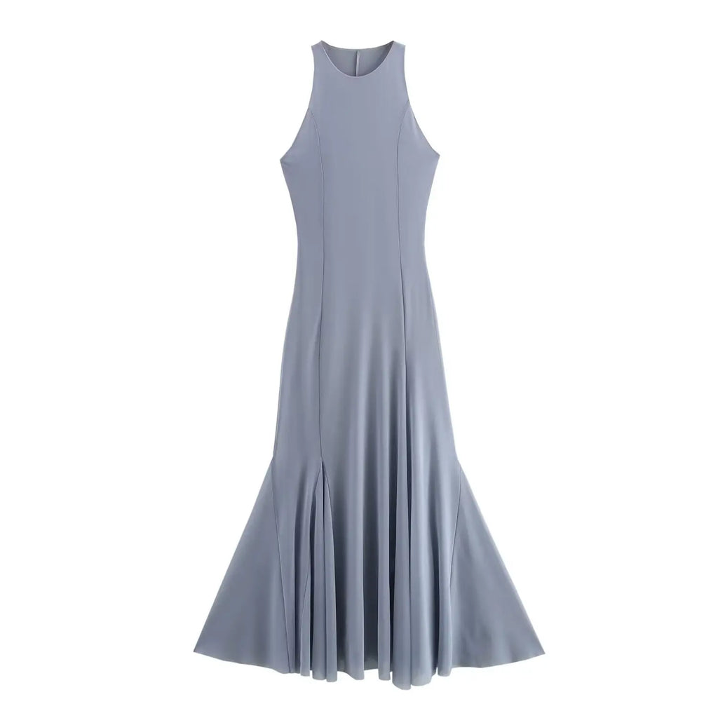 Sleeveless Party Fashion Long Dress Vestidos Solid Color Gray Blue O-neck Solid Color Fishtail Dress 2025 New Female Clothes