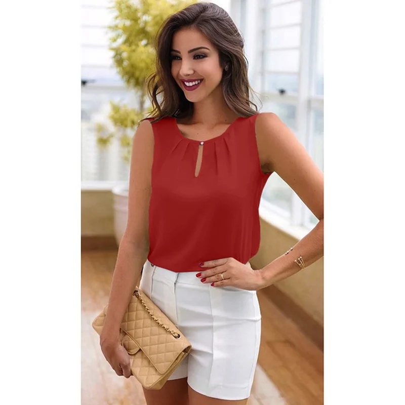 | Summer Women Chiffon Shirts Sleeveless Tshirts for Women Tops Blouses | ||||