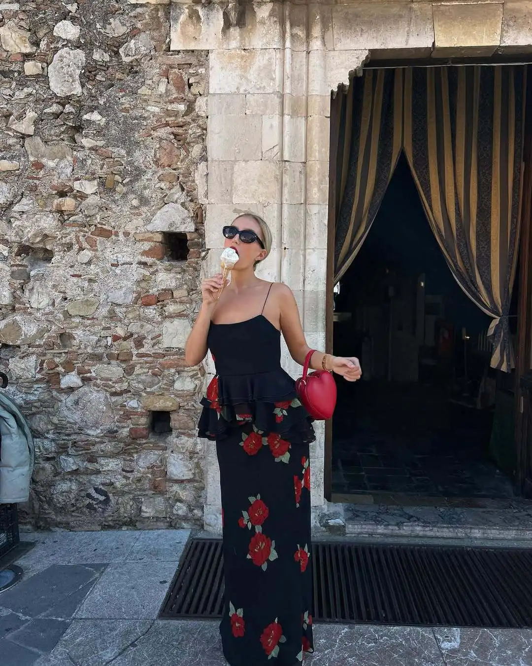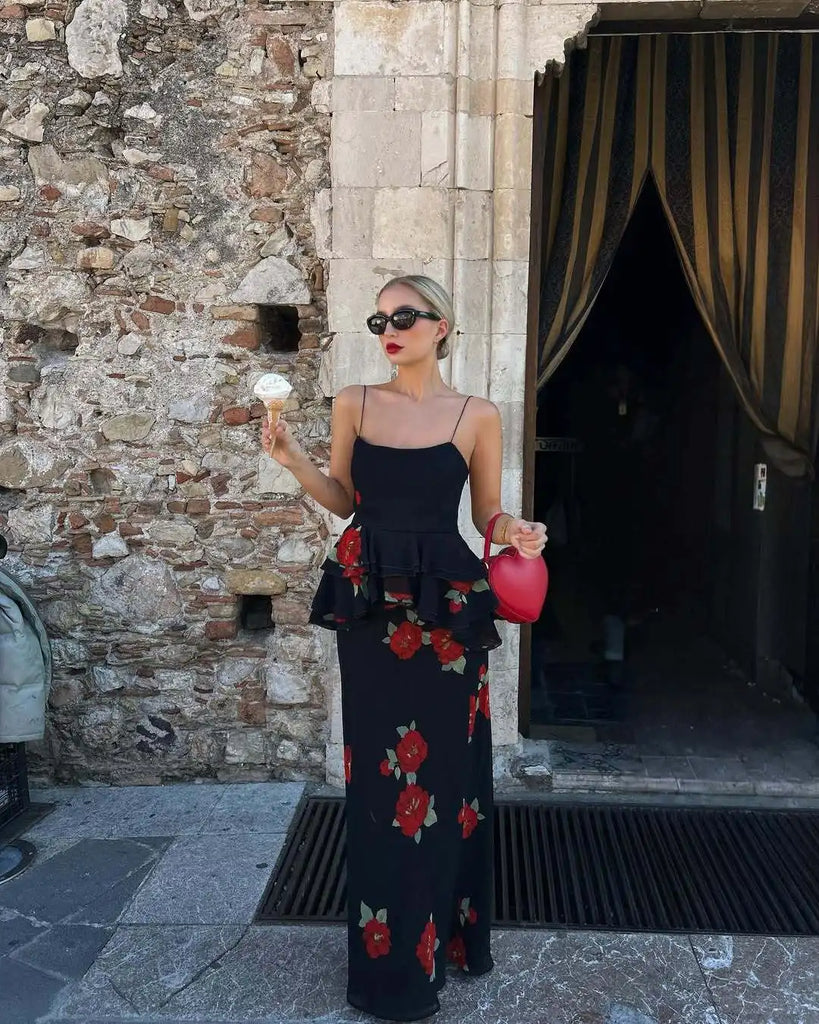 Slim Ruffles Flower Print Sling Top+ Skirts Suit Women's Sleeveless Vest Hip Package Skirt 2 Pieces Set 2025 New Lady Outfits