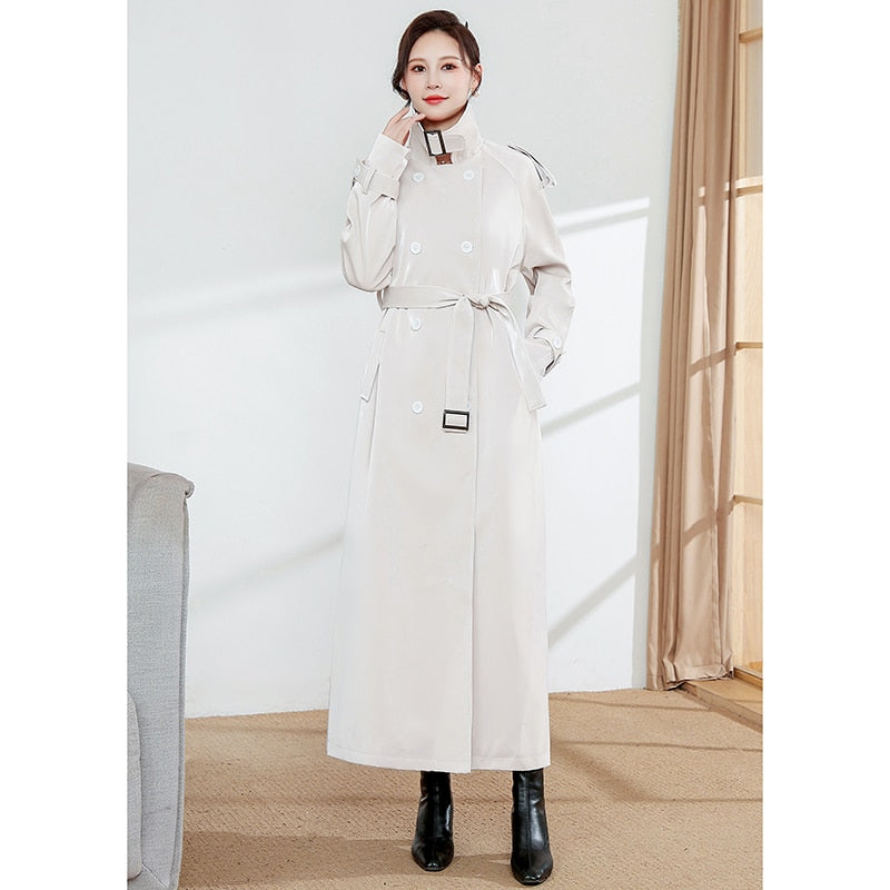 Spring Autumn Extra Long Oversized Cool Reflective Shiny Black Paten Leather Trench Coat for Women Belt Runway Fashion
