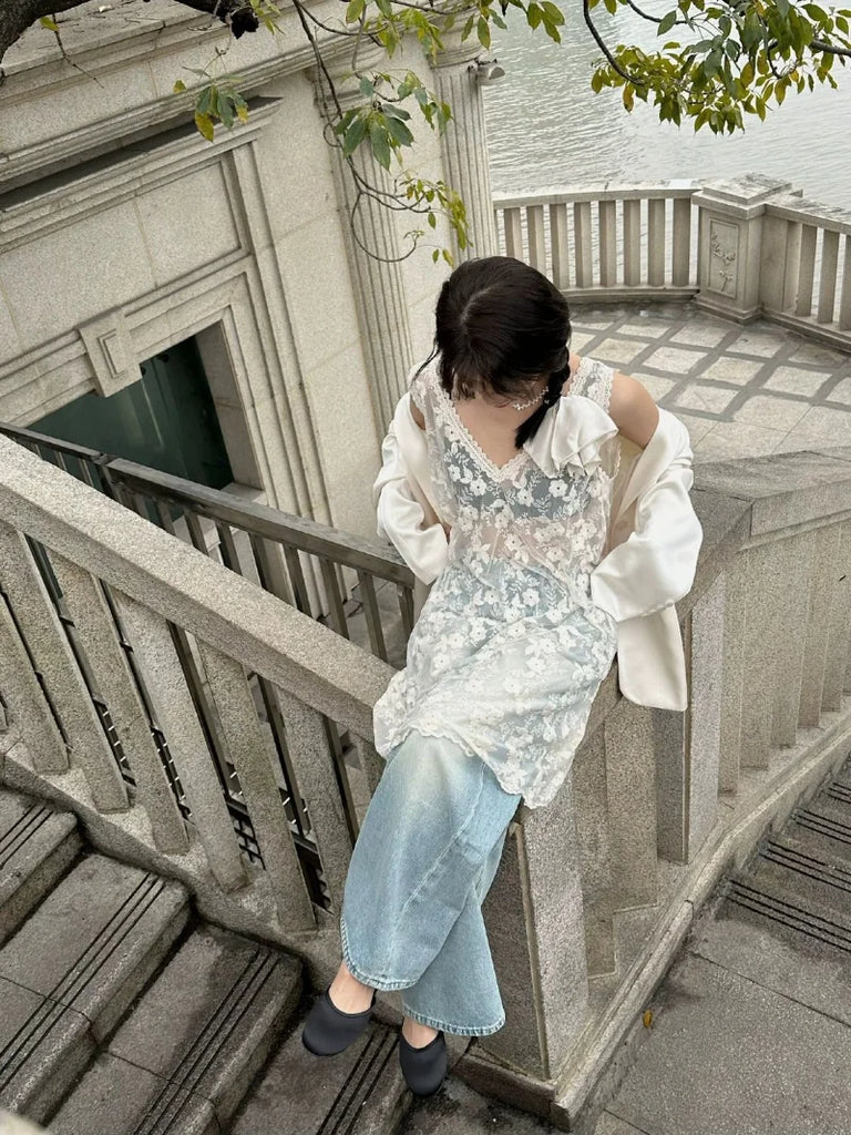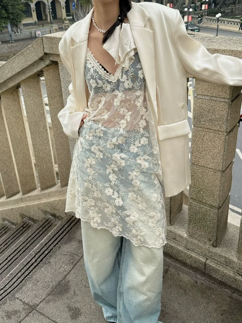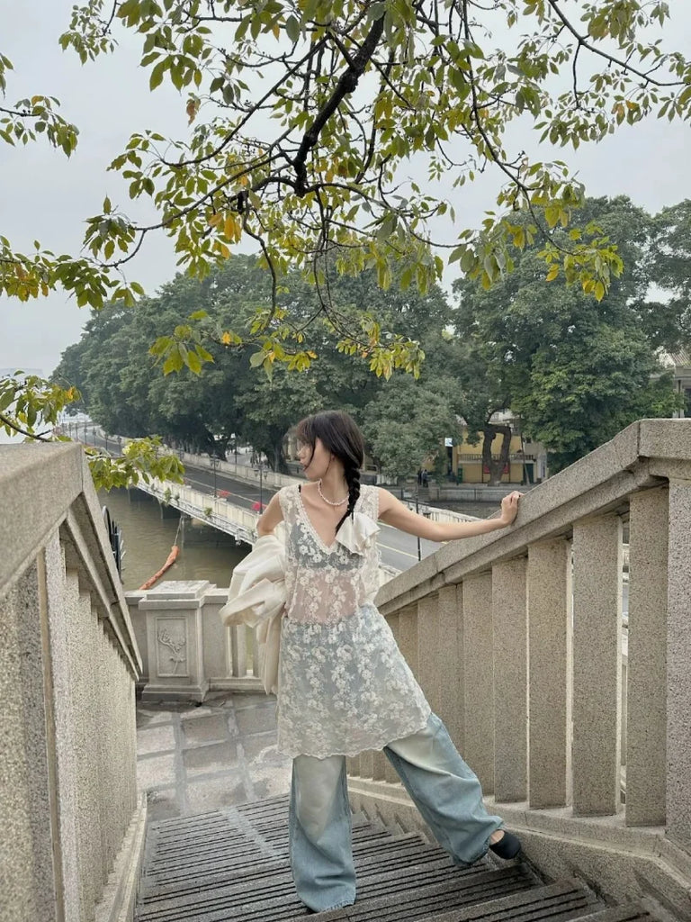 Spring Fashion Sexy Flower Long Bottom Tank Tops Fairy Flower Print Temperament High End Shirts Y2k Streetwear All Macth Clothes