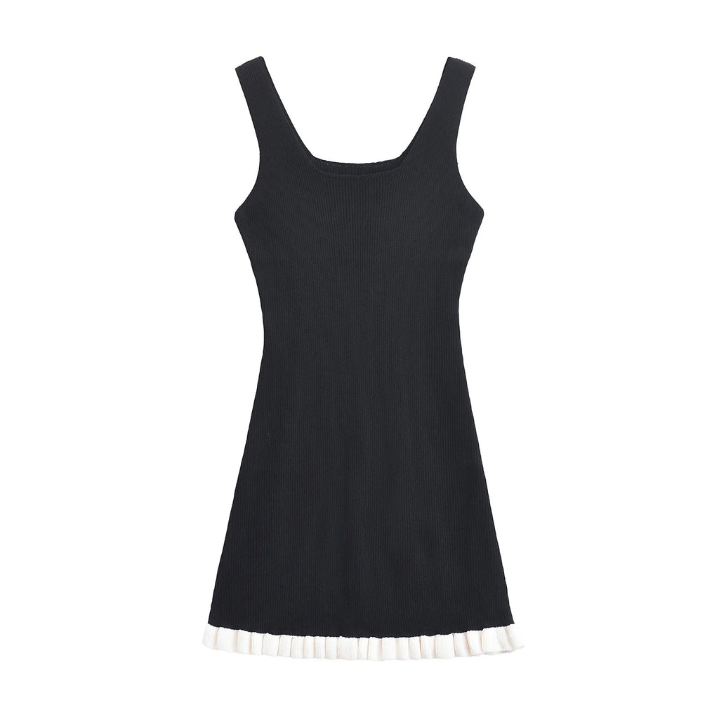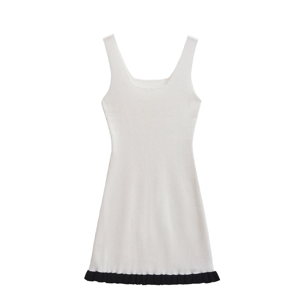 Square Collar Knit Pit Stripe Short Dress Chic Patchwork Sleeveless Slim Summer Women Dress Fashion Tight Female Clothing New