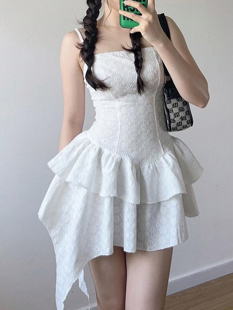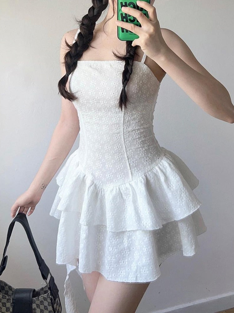 Strap Sleeveless Hollow Stitching Pleated Dress