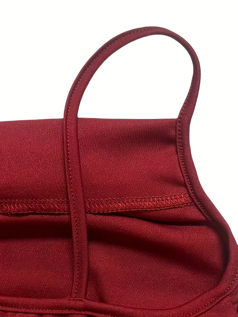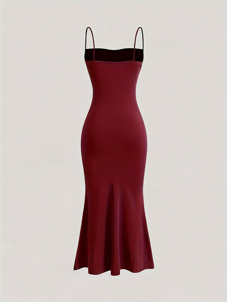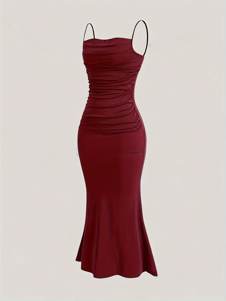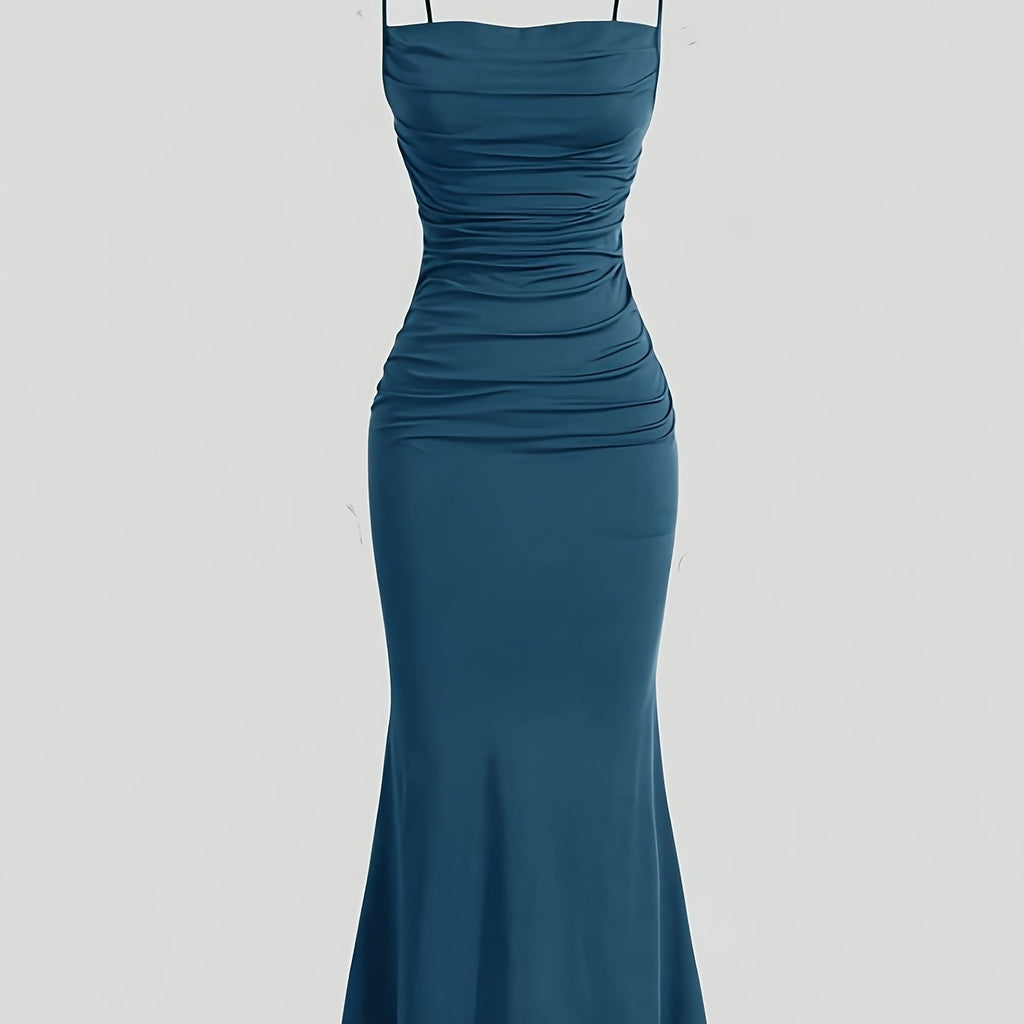 Stretchy Ruched Spaghetti Dress for Women - Elegant Solid Color Suspender, Machine Washable Polyester Blend