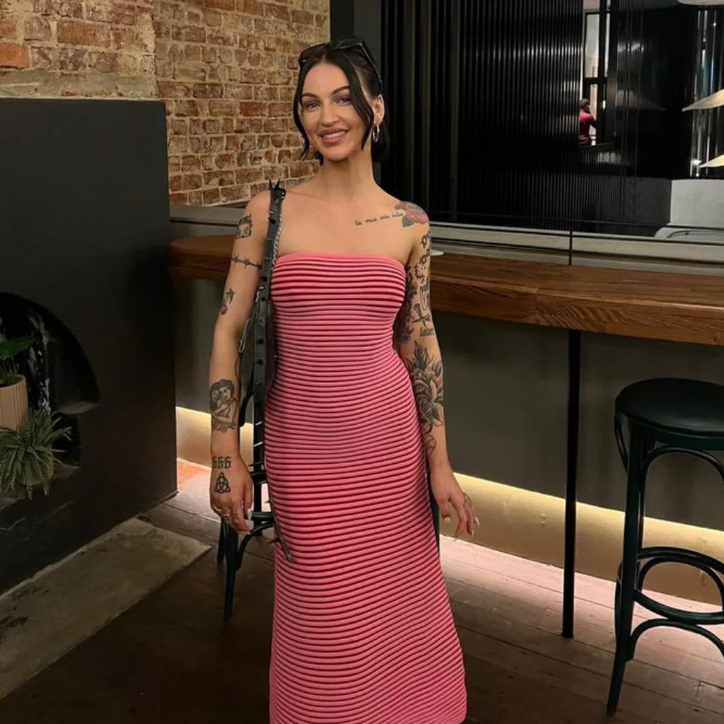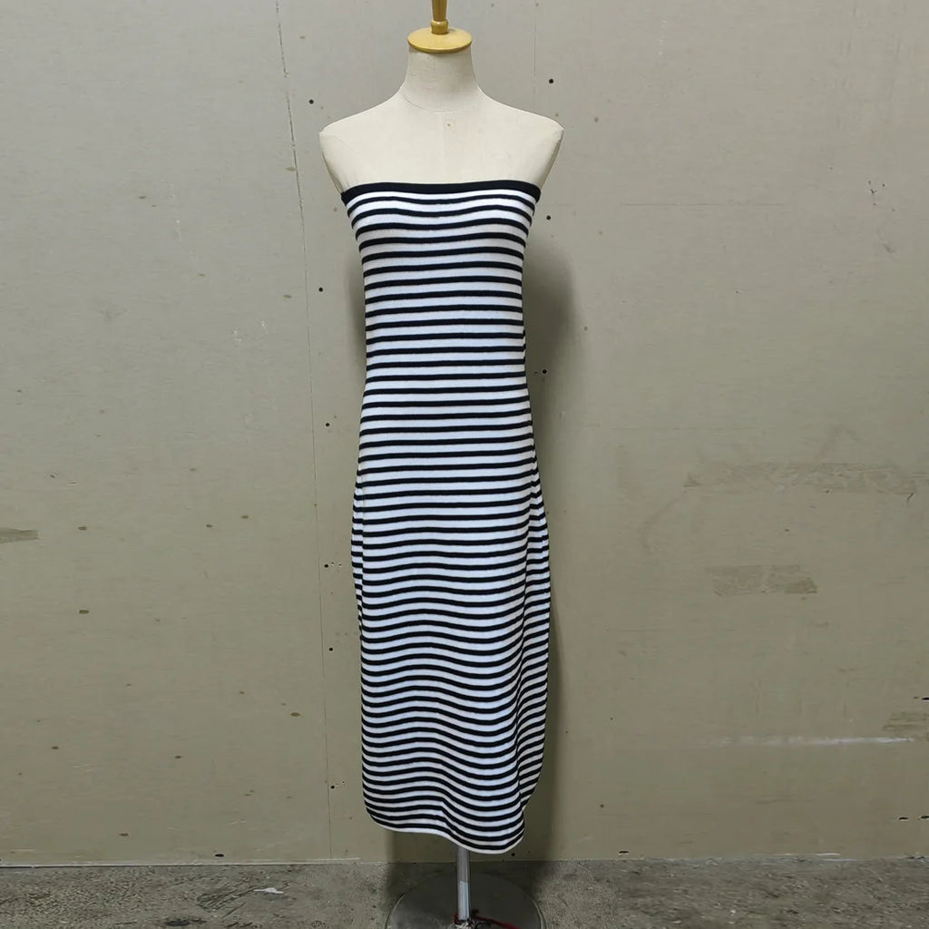 Stripe Cotton Core Spun Yarn Knitted Long Dress Fashion Sexy Slim Strapless Women Dresses Summer Woman Clothing Vestidos