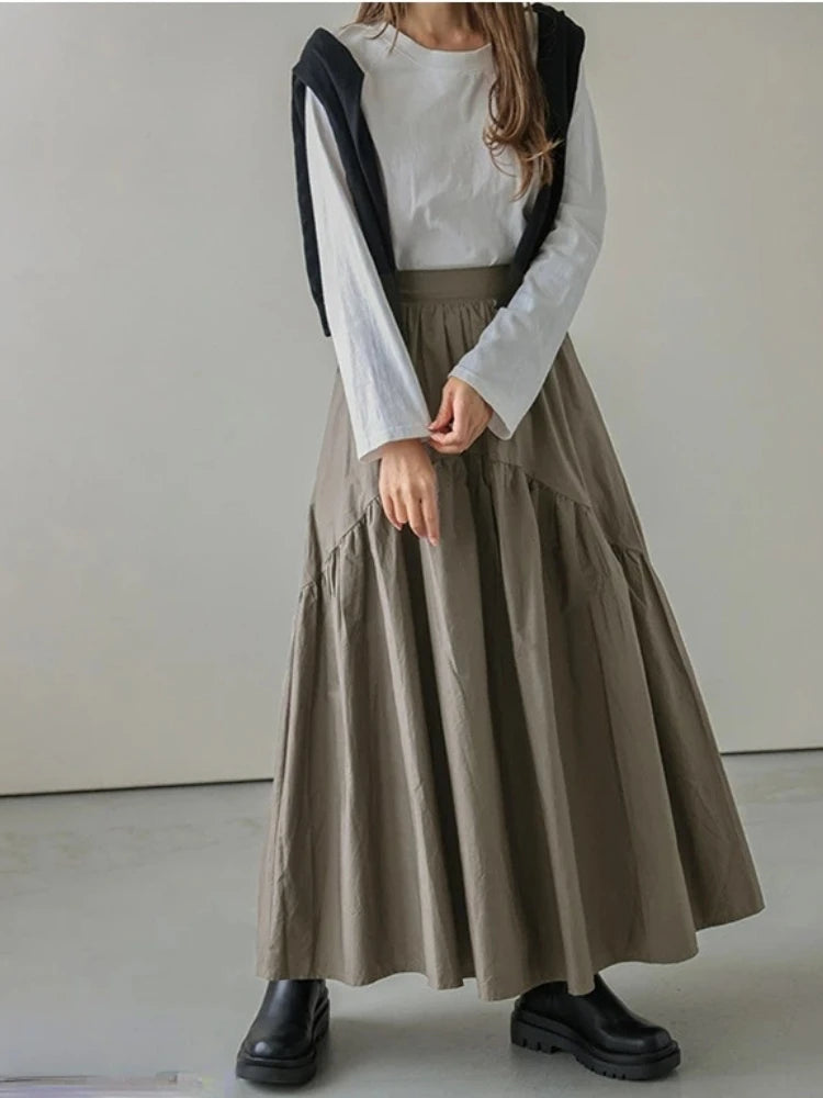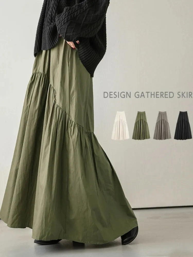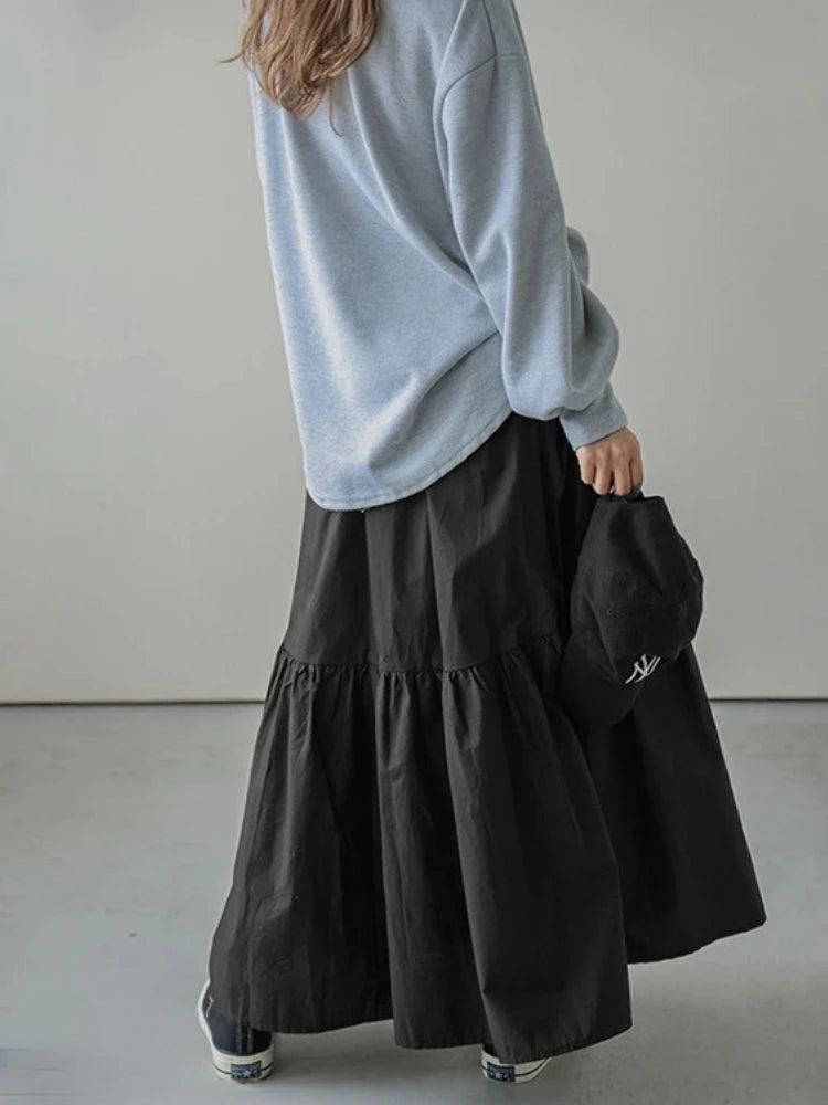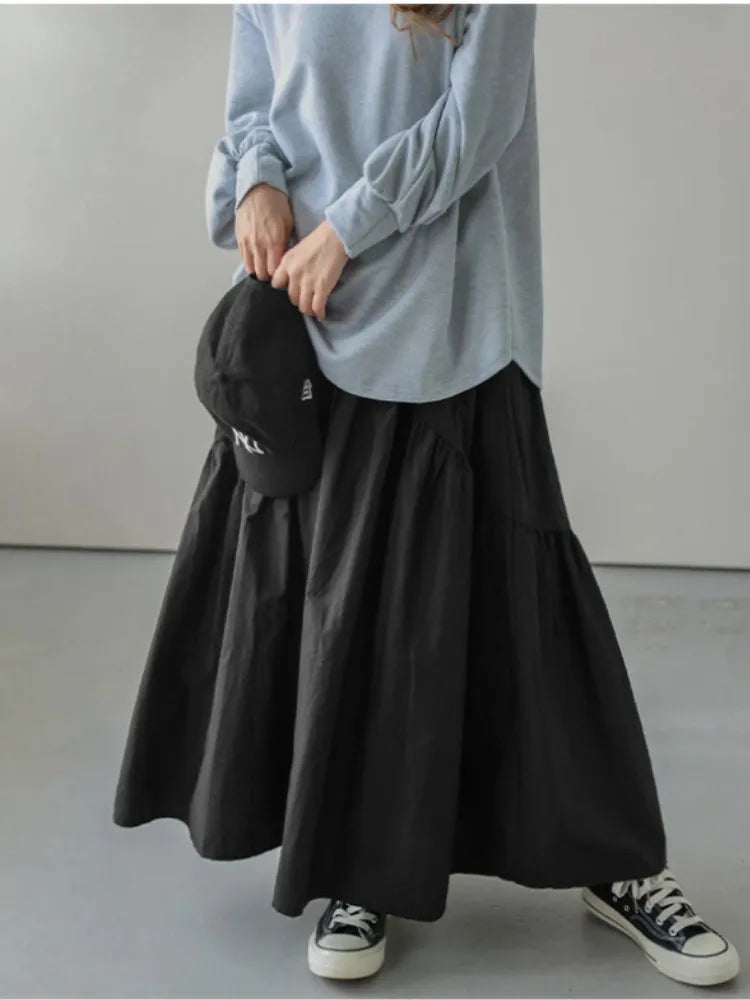 Summer Long Skirts for Women Fashion Casual Retro Pleated Skirt Solid Fishtail Skirt Black Skirt Korean Fashion Clothing