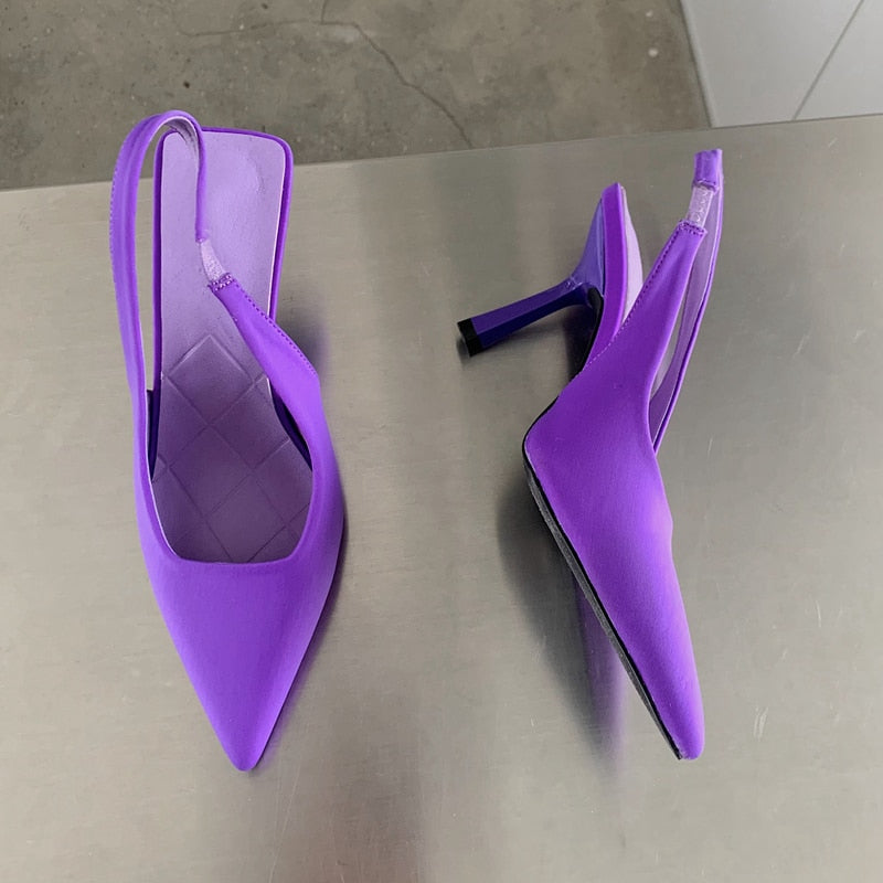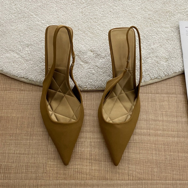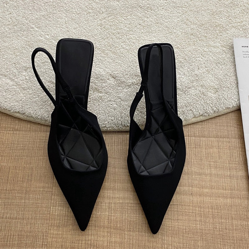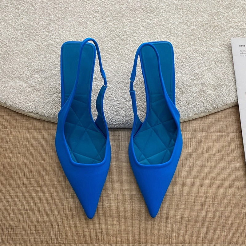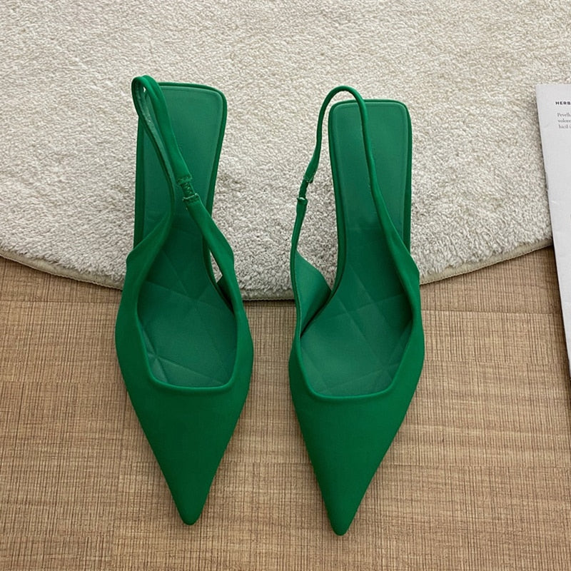 Summer New Brand Pointed Toe Slingback Shoes Thin High Heel Shallow Slip On Ladies Elegant Sandals Plus Size 41