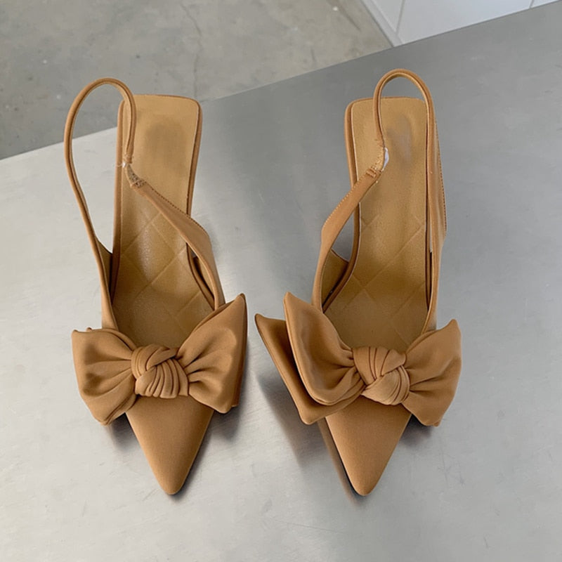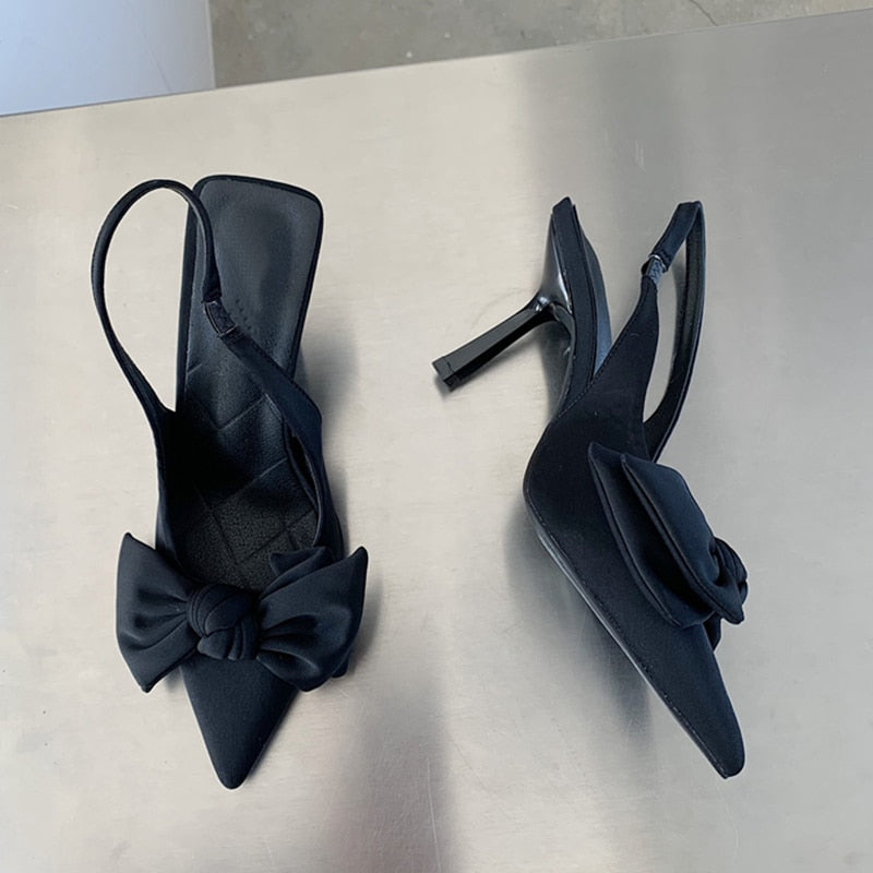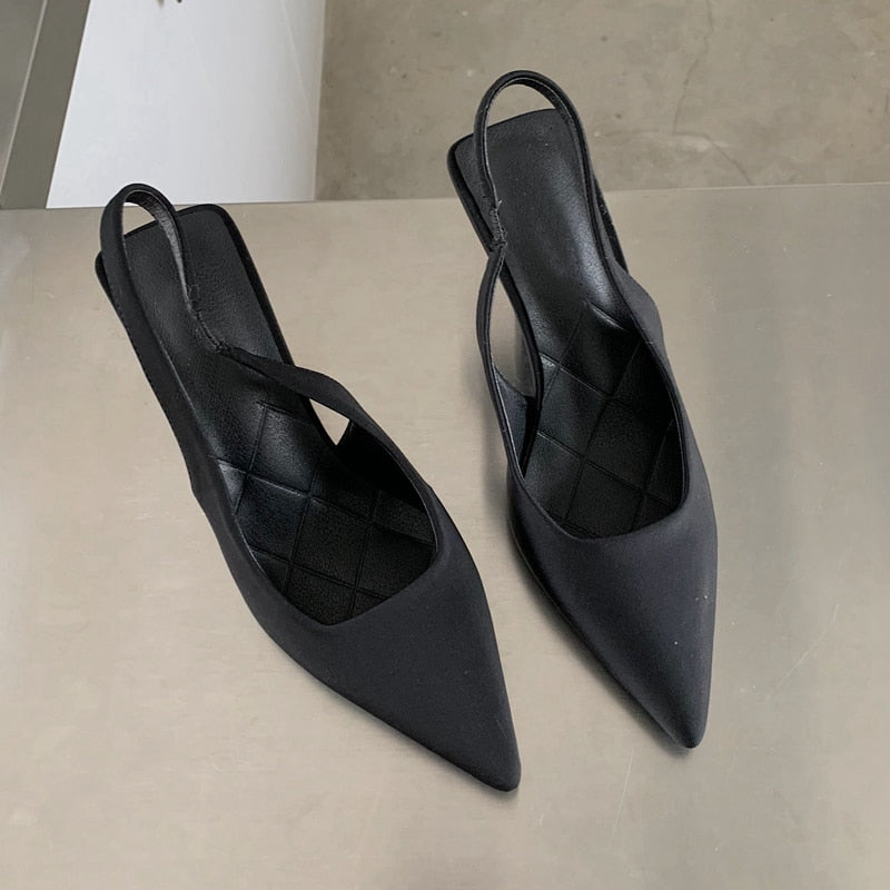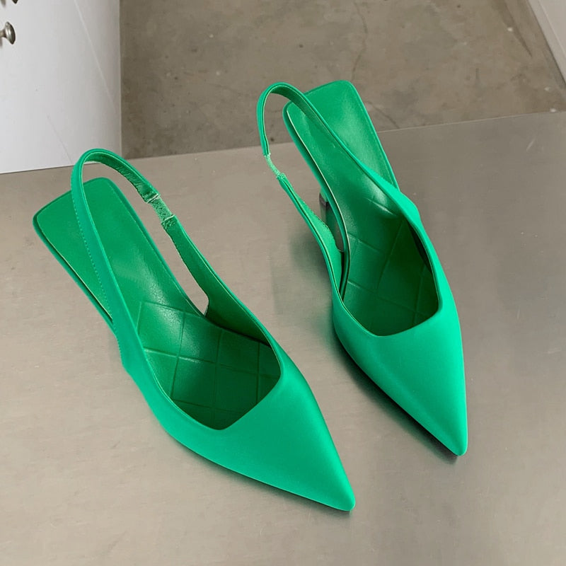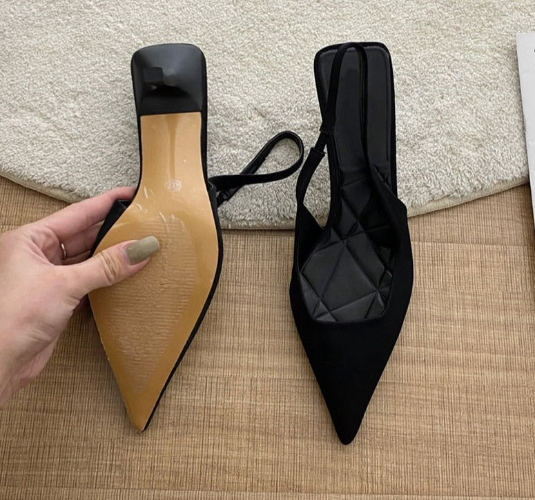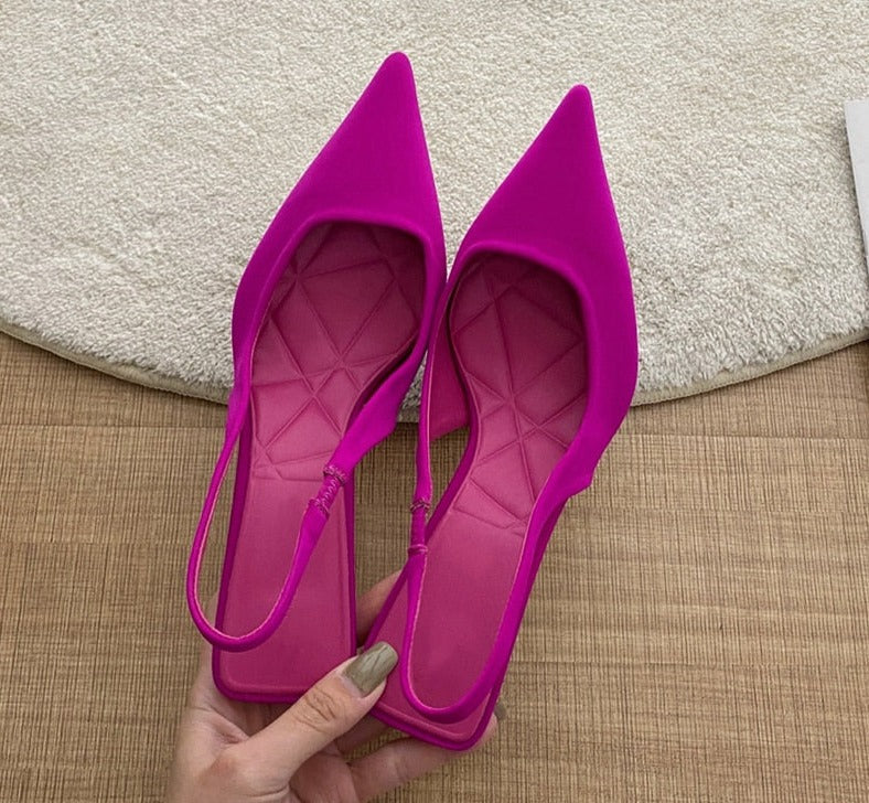 Summer New Brand Pointed Toe Slingback Shoes Thin High Heel Shallow Slip On Ladies Elegant Sandals Plus Size 41