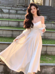 Summer New French Elegant Spaghetti Strap Sleeveless Vestidos Mujer A-line Evening Wedding Party Midi Dress For Women
