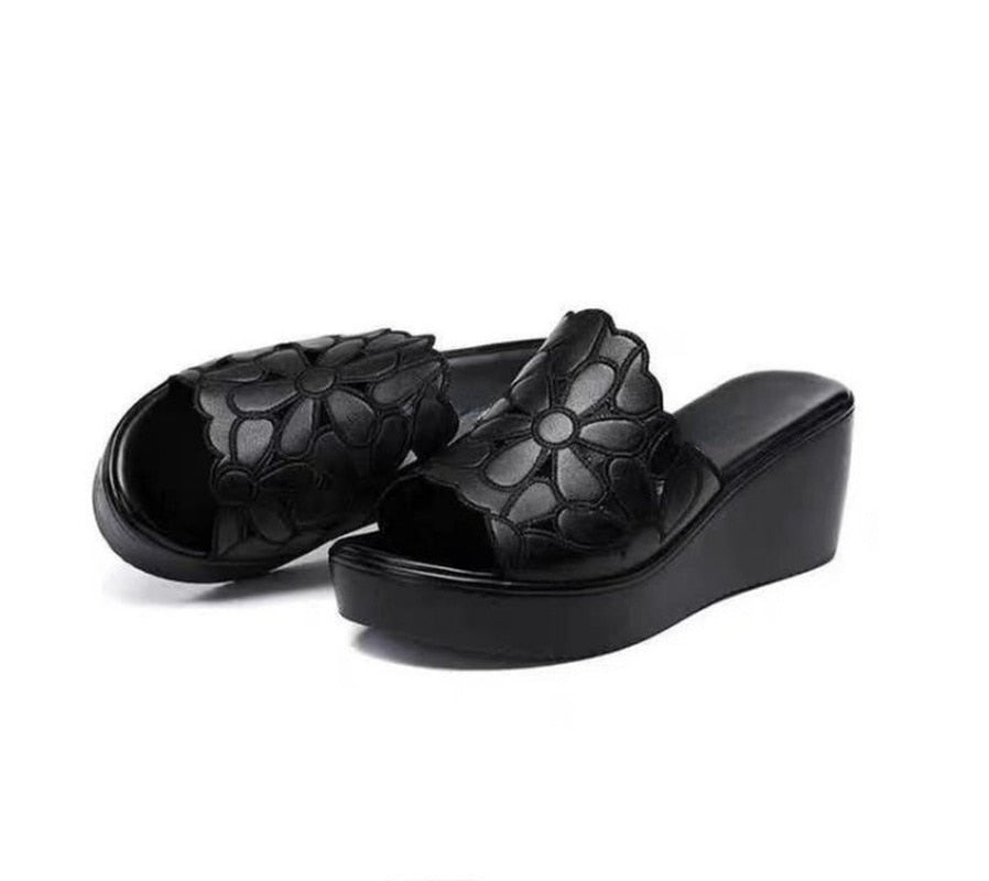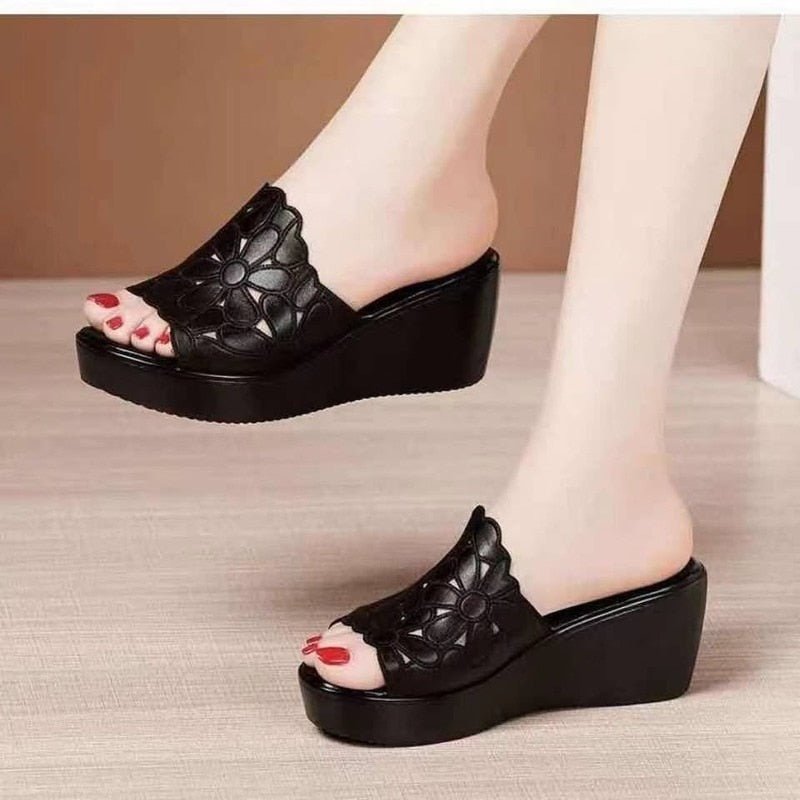 Summer wedges Sandals Thick Bottom High Heel Waterproof hollow flowers Platform Slippers Fashion women shoes heels slippers