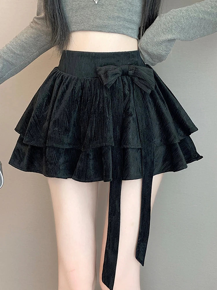 Sweet Bow Cake Skirts Women Vintage Slim High Waist Sexy Mini A Line Skirt Korean Preppy Style Fall Winter Dance Skirt New