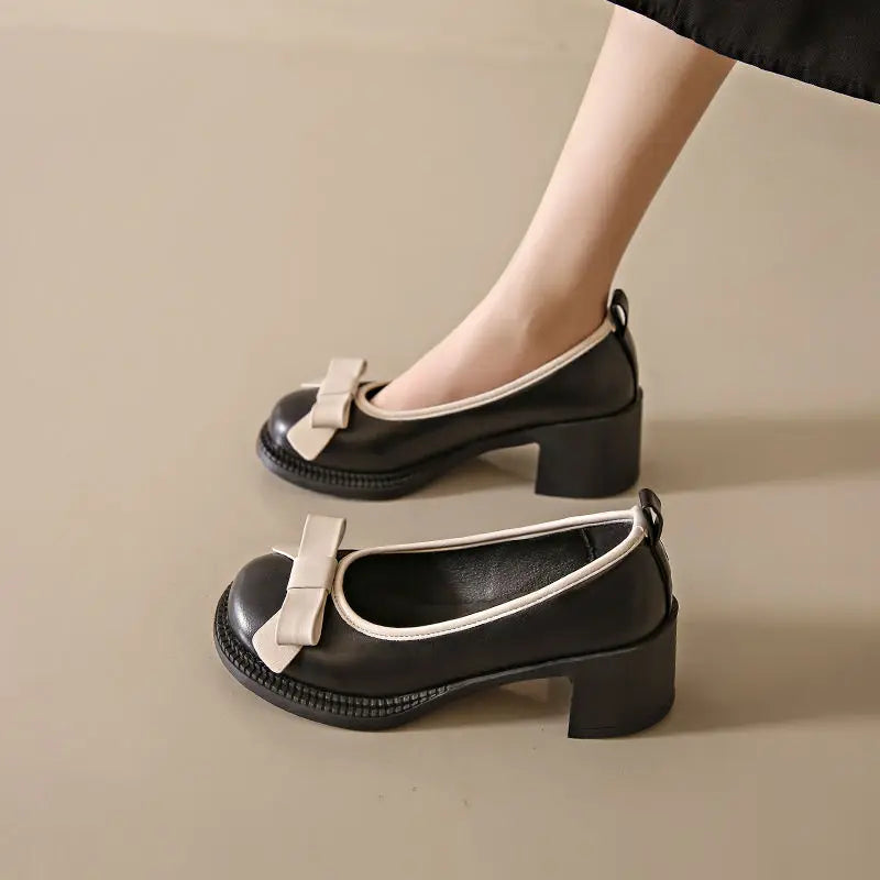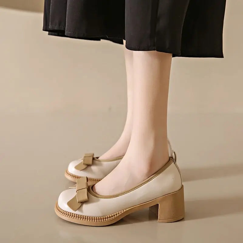 Sweet Bow High Heels Women Autumn Fashion Elegant Mary Jane Shoes Outdoor Walking Loafers Party Pumps Zapatos Vestir Mujer