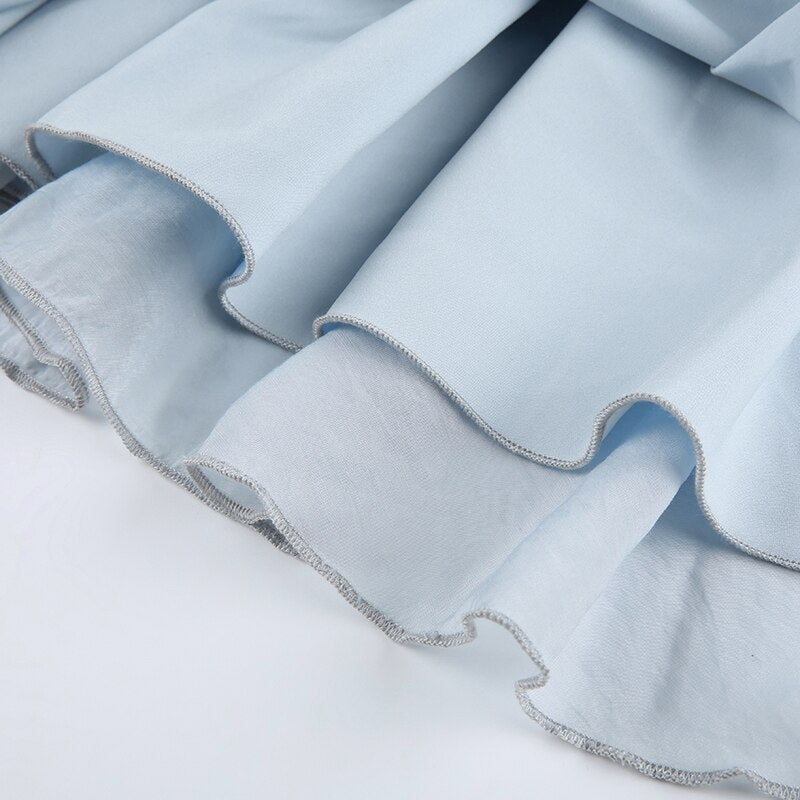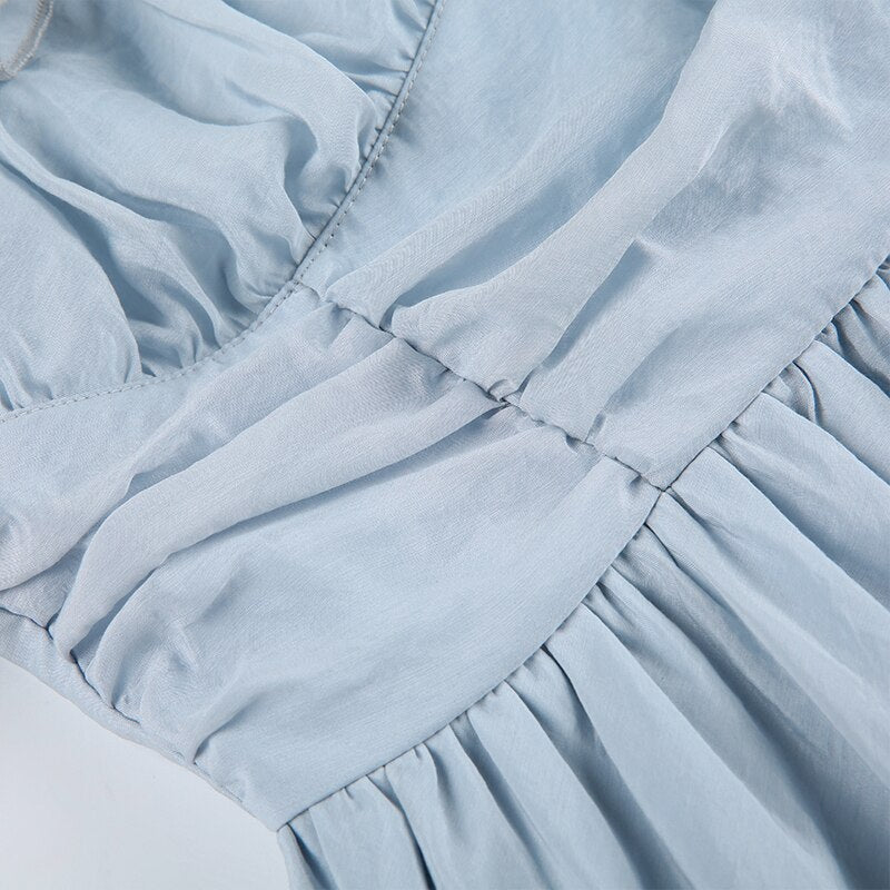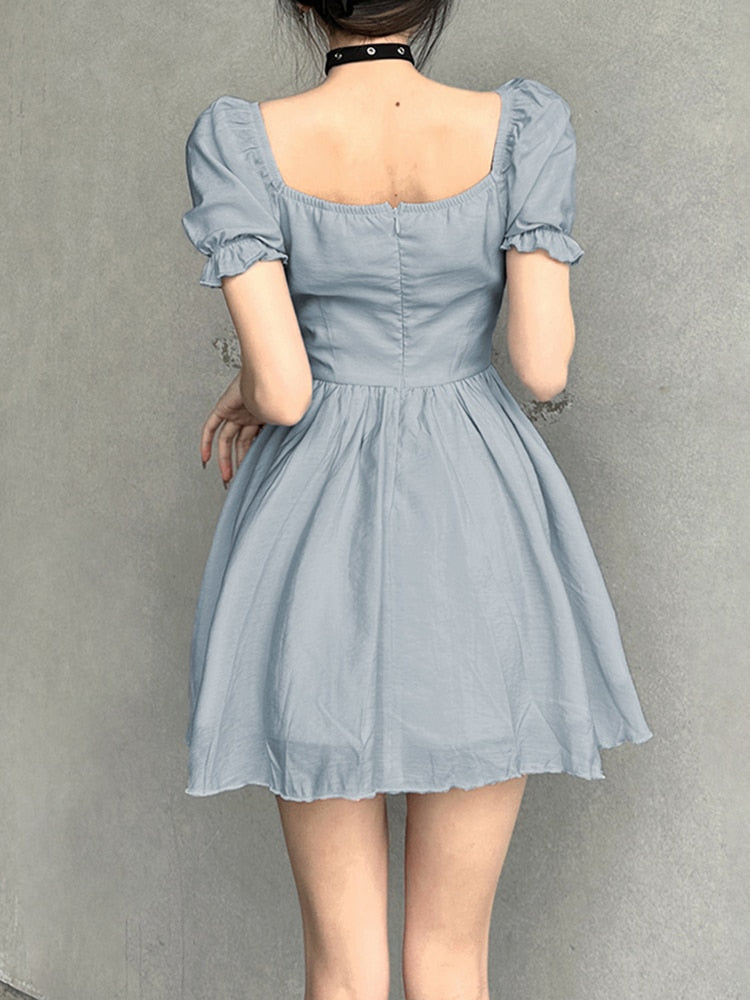 Folds A-Line Square Collar Puff-Sleeve Dress