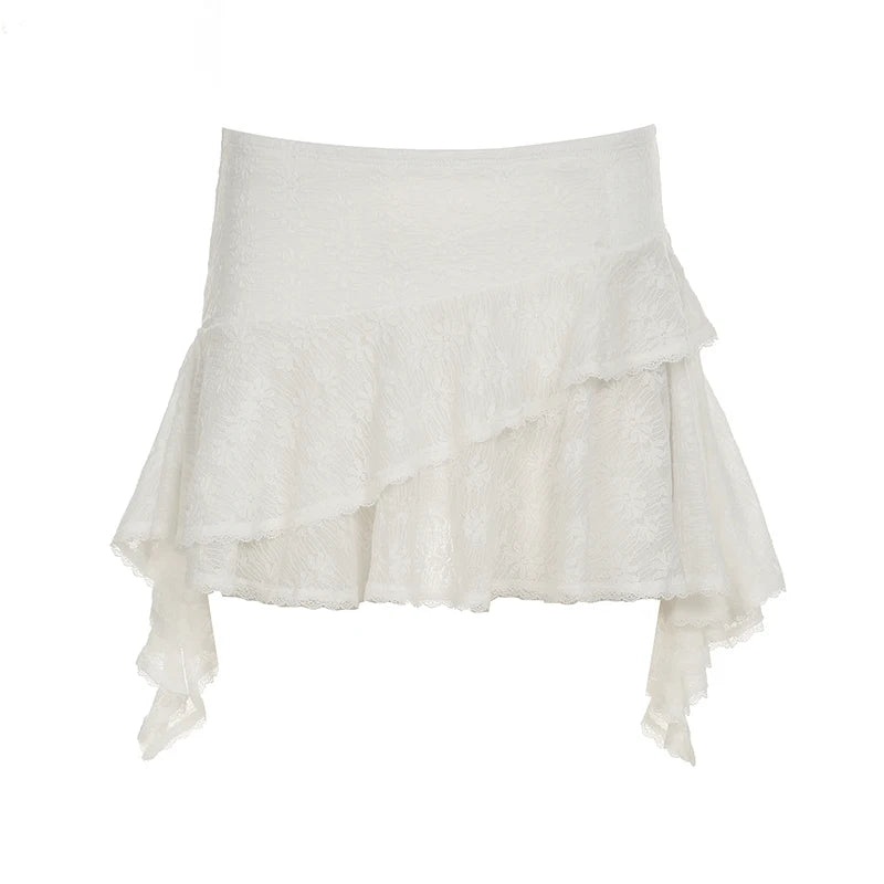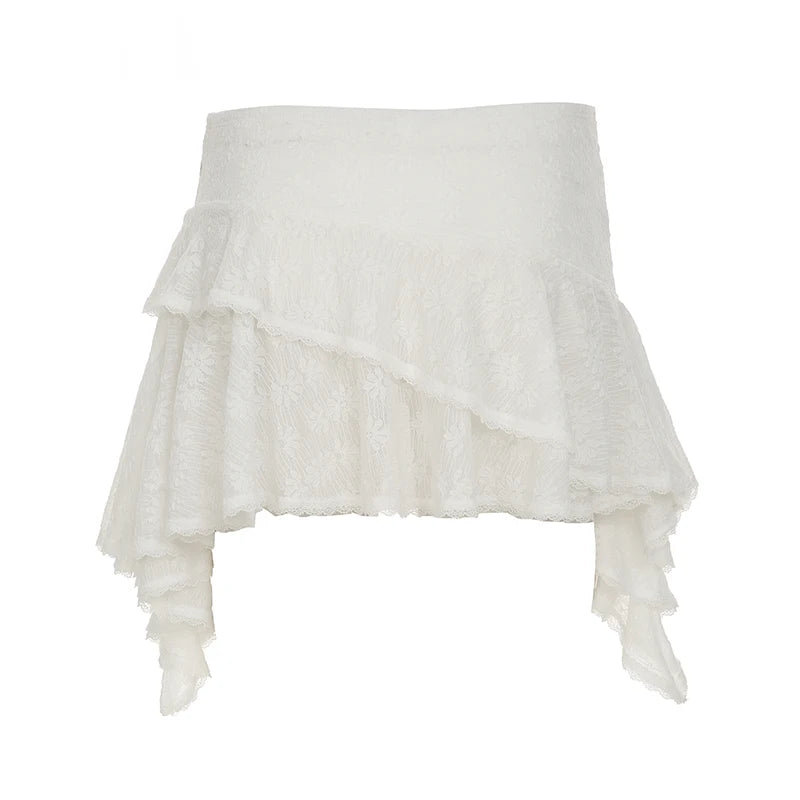 Sweet Lace Irregular Lace Up Women’s Mini Skirts Solid Elegant Gentle Classical Skirts High Fashion