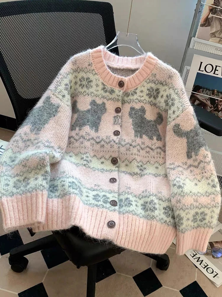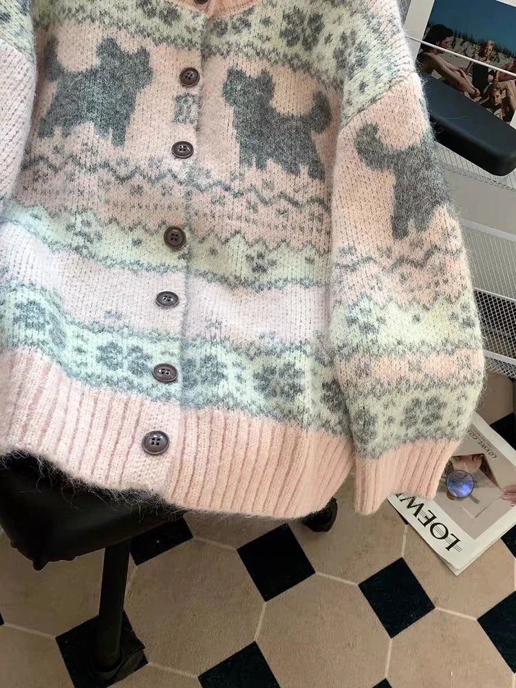 Sweet Pink Cartoon Cardigan Sweaters Women Vintage Lazy Wind Long Sleeve Cute Knitted Coat Casual Japan Kawaii Loose Tops