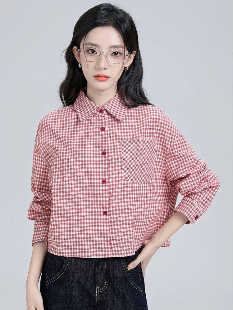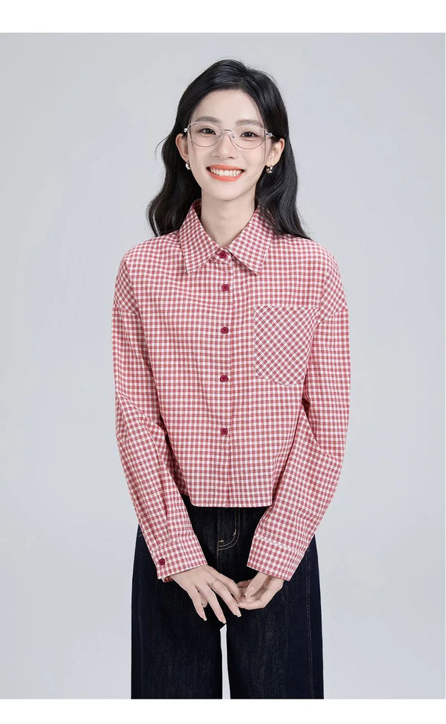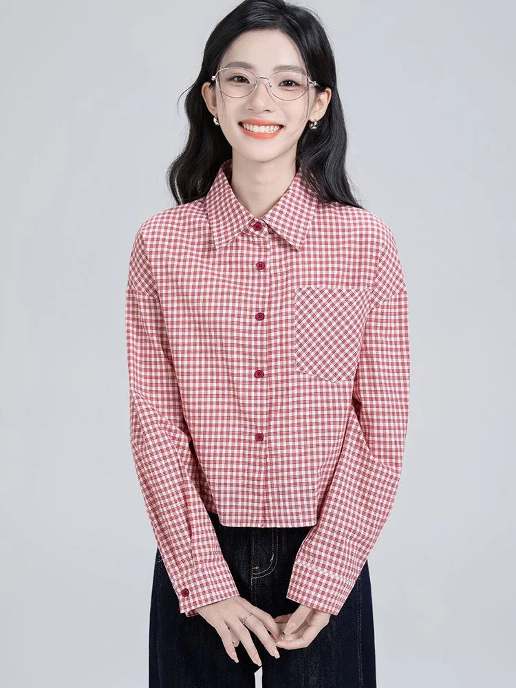 Sweet Red Plaid Shirt Women Preppy Style Vintage Long Sleeve Blouse Korean Fall Loose Female Retro Cute All Match Tops New