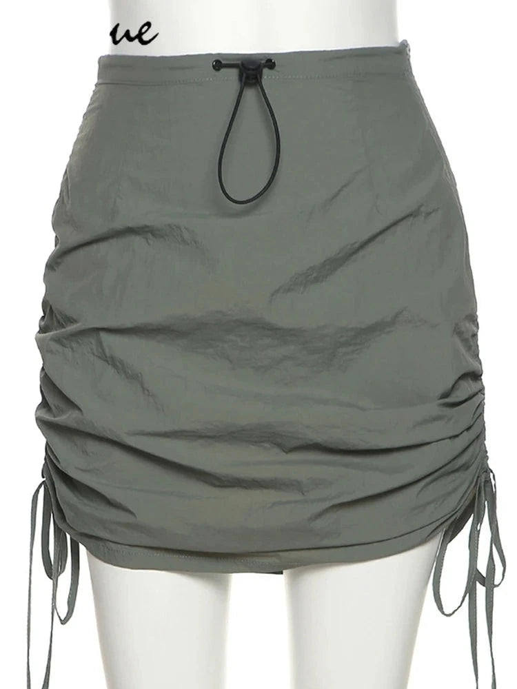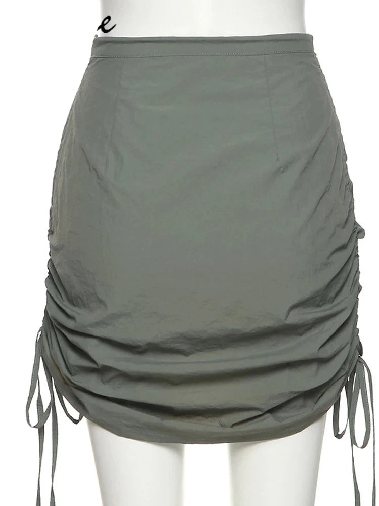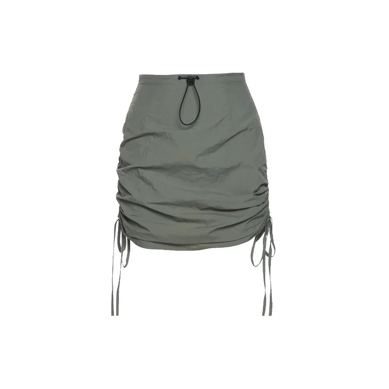 Army Green Retro Pleats All-Match Sexy Mature Hot Self-Cultivation Feminine Street Outing Women'S Short Skirt