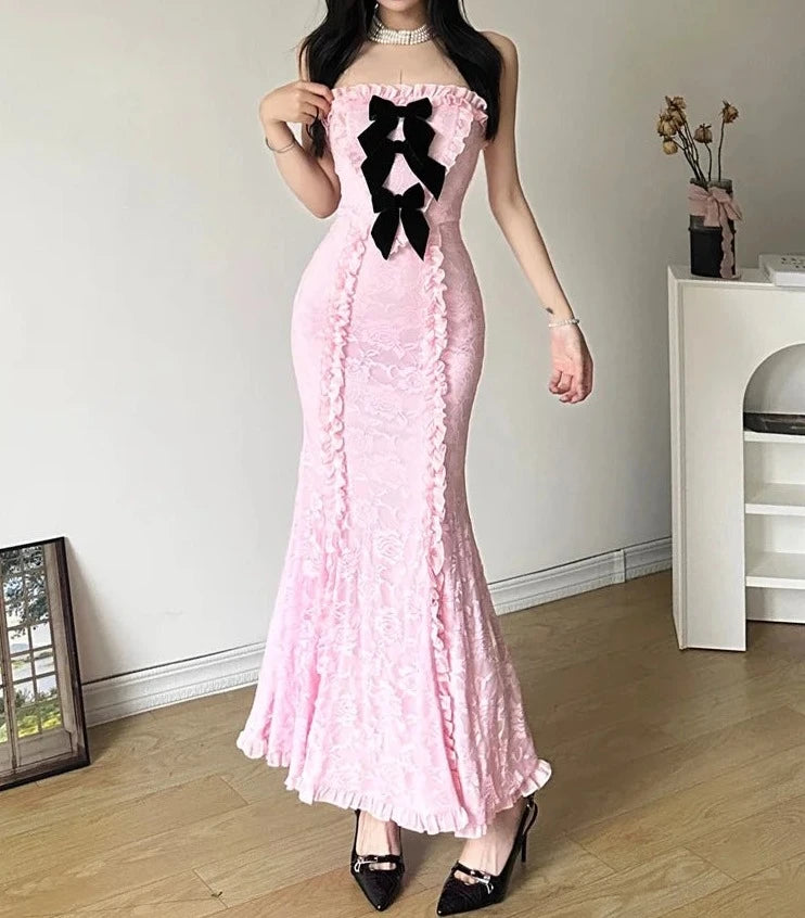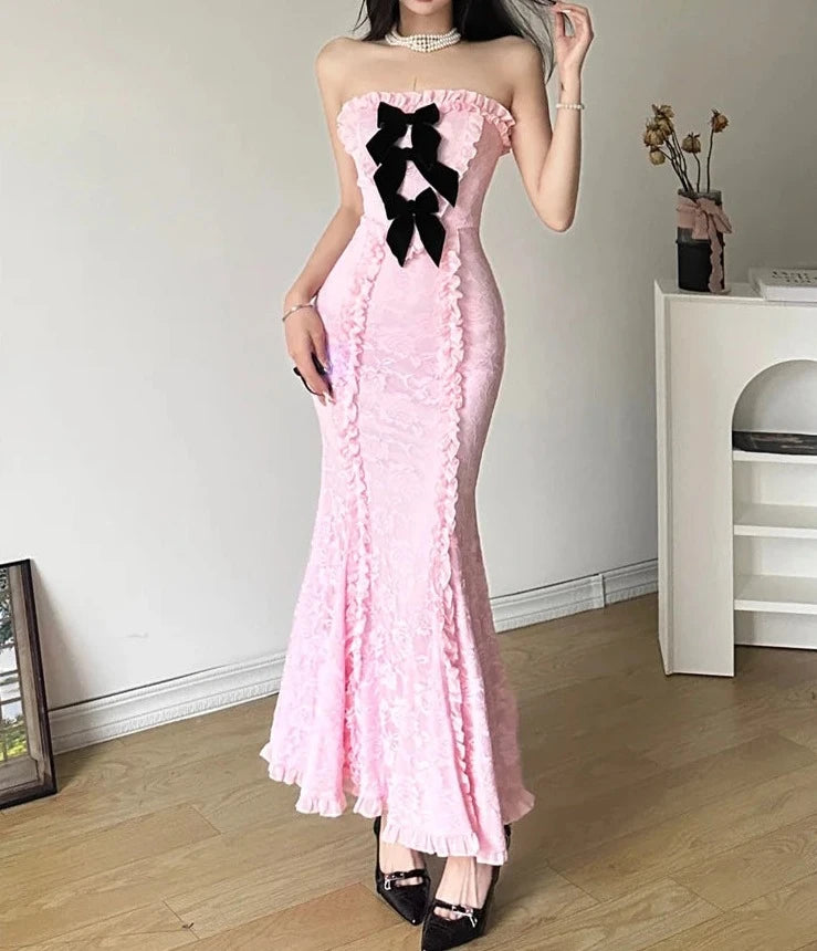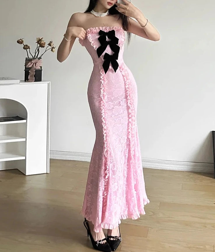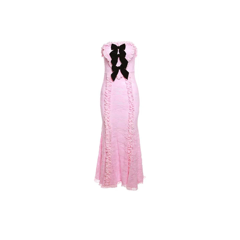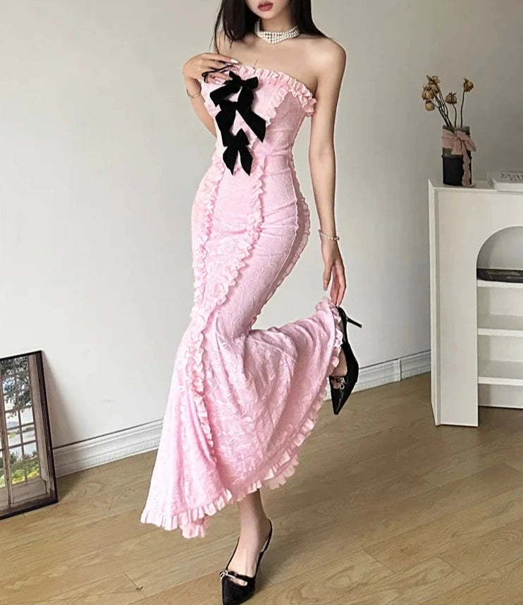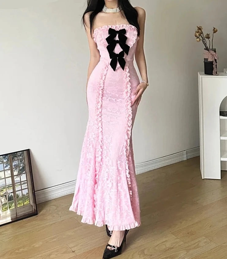 Winter Bachelor Party Formal Pink Sweet Tight Sexy Mature Beautiful Confident Women'S Long Pleated Chest Wrap Dress