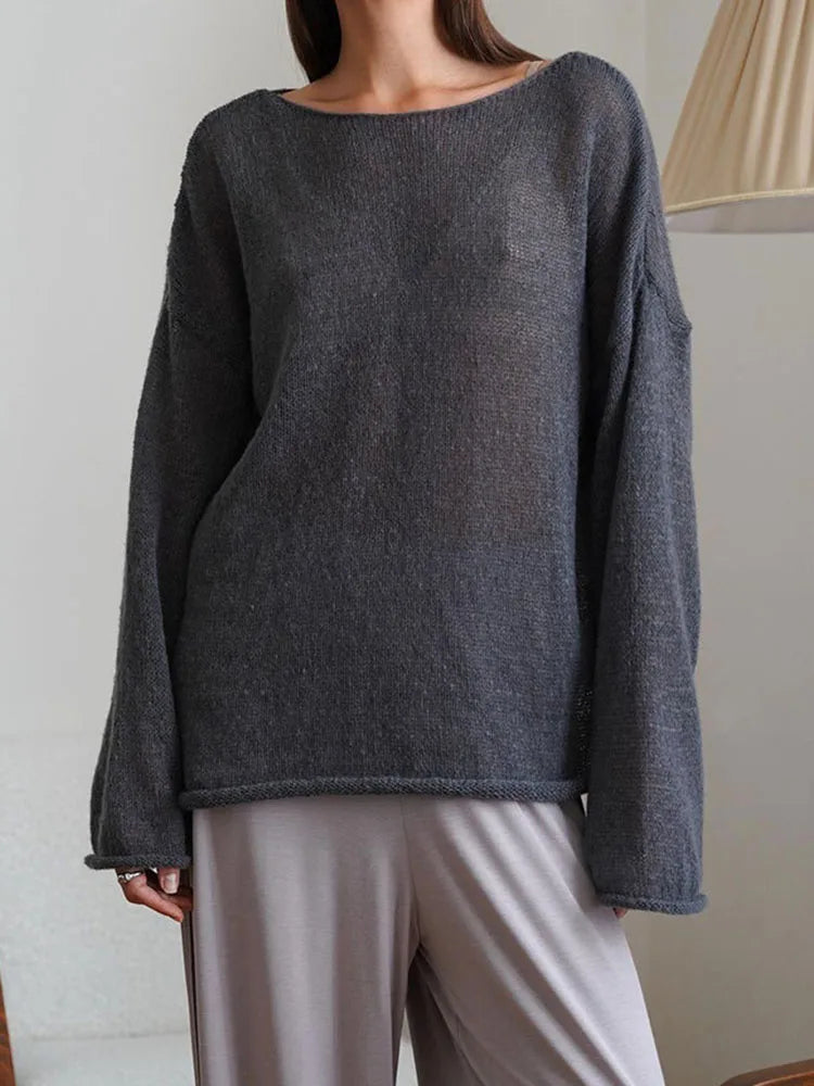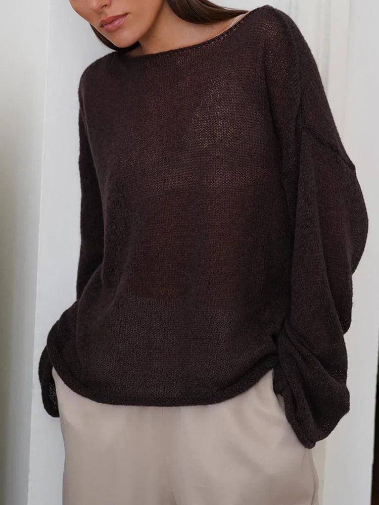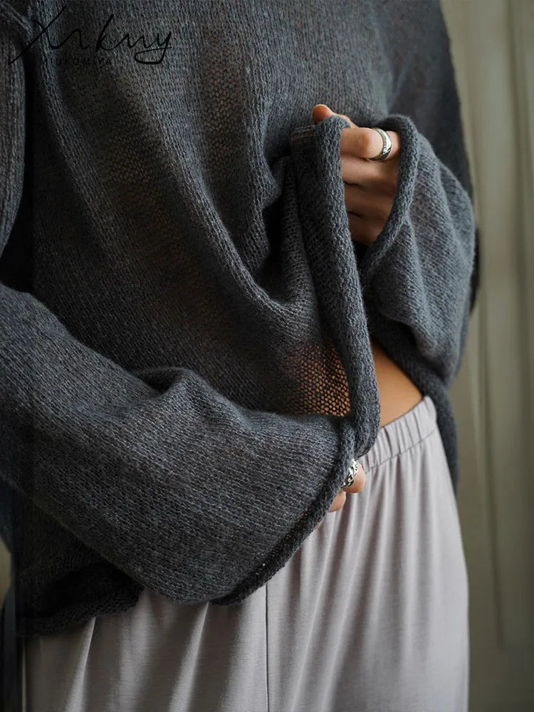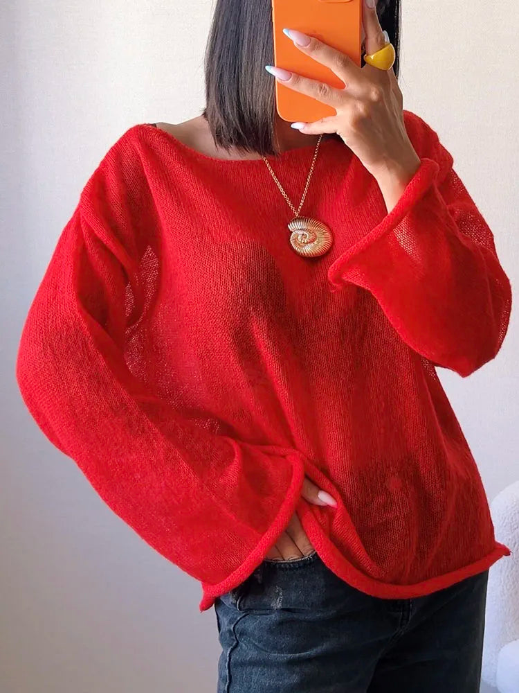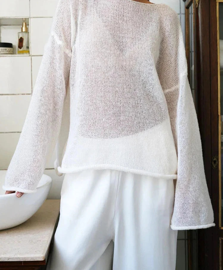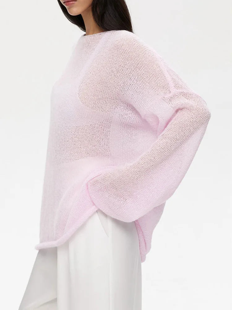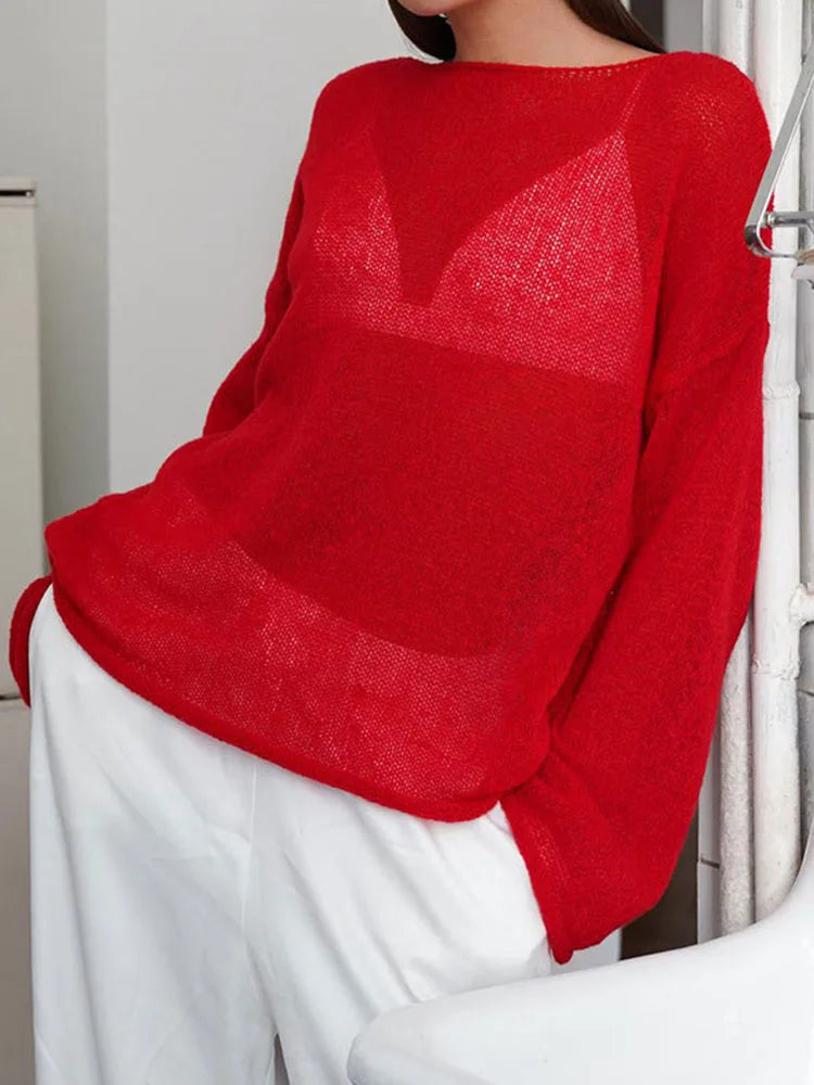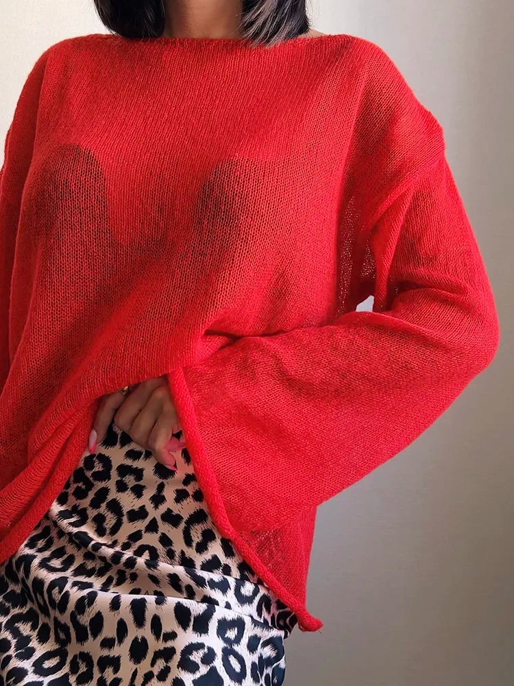 T Shirts Oversize Thin Knitted Pullovers Women Summer Trumpet Long Sleeve T Shirt For Women Loose Top Tees Transparent Sweater